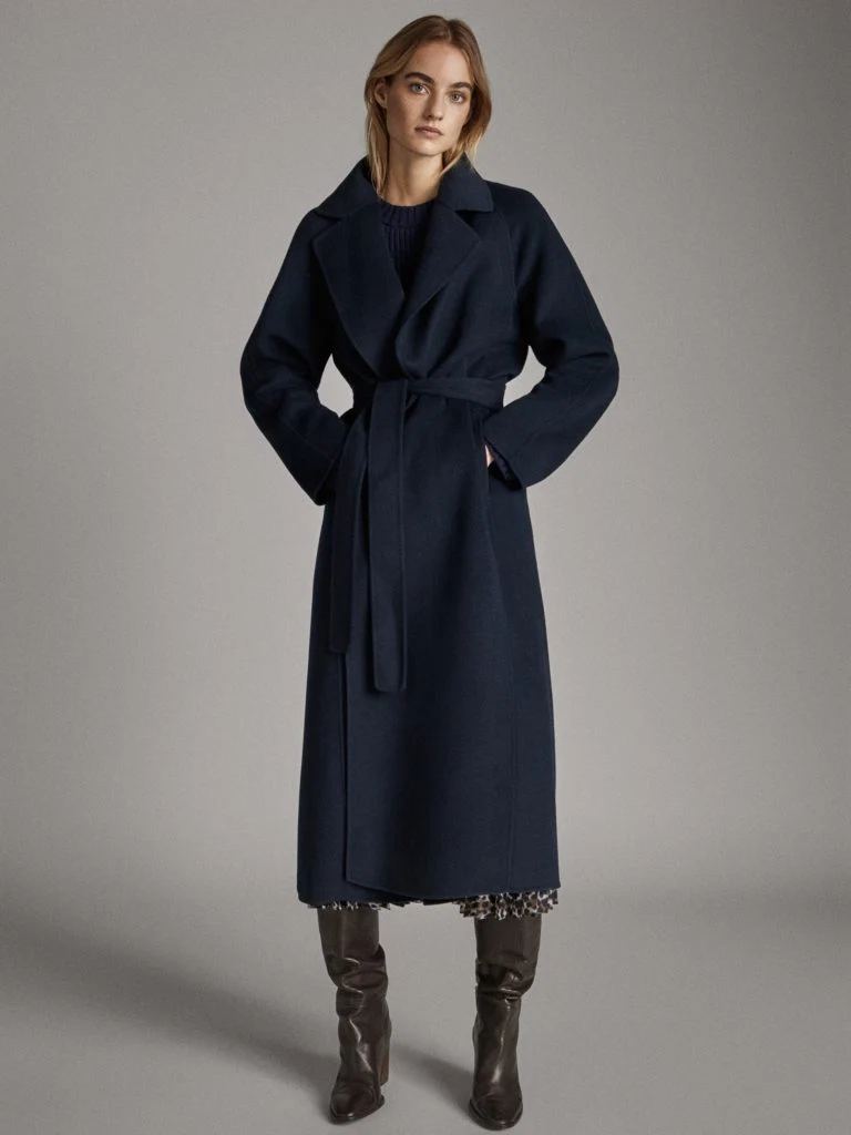 Handmade navy blue wool coat, €299 at Massimo Dutti