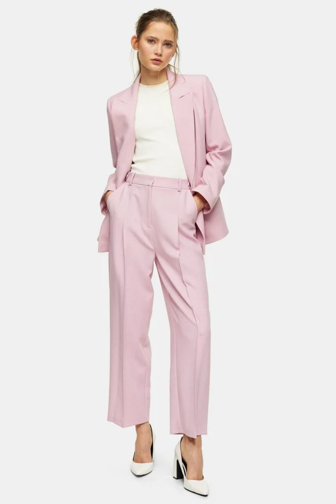 Pink tab waist straight trousers, €52 at Topshop