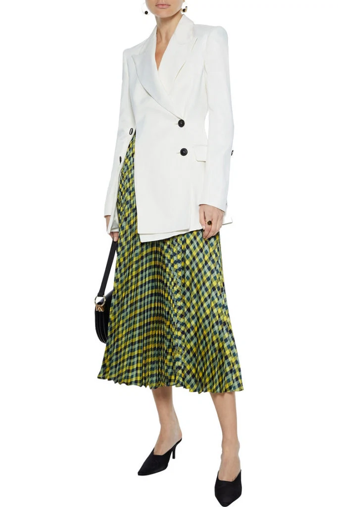 Yellow Abbot pleated checked silk-twill midi skirt, €334 at The Outnet