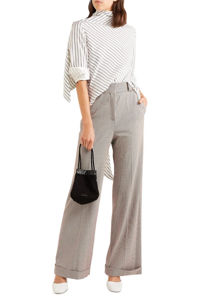 Taupe checked jacquard wide-leg pants, €171 at The Outnet
