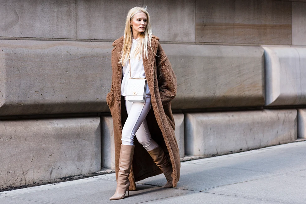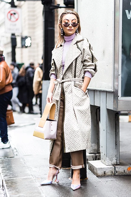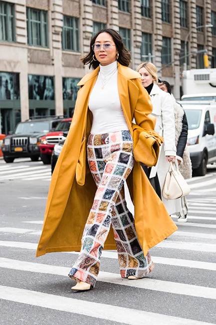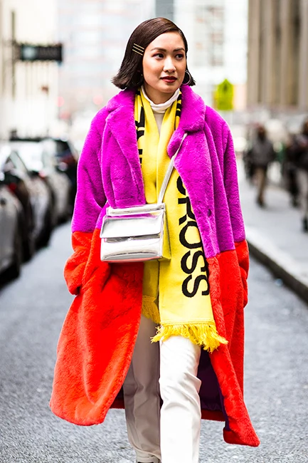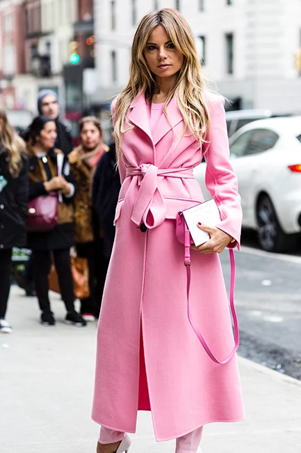 You don’t have to forgo wearing a coat (in fact you shouldn’t because you’ll freeze) but do swap traditional black or navy outerwear for a vibrant coloured coat instead.