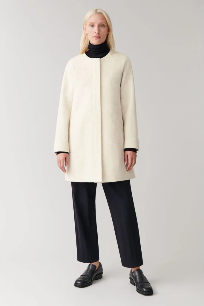 Collarless a-line wool coat, €195 at COS