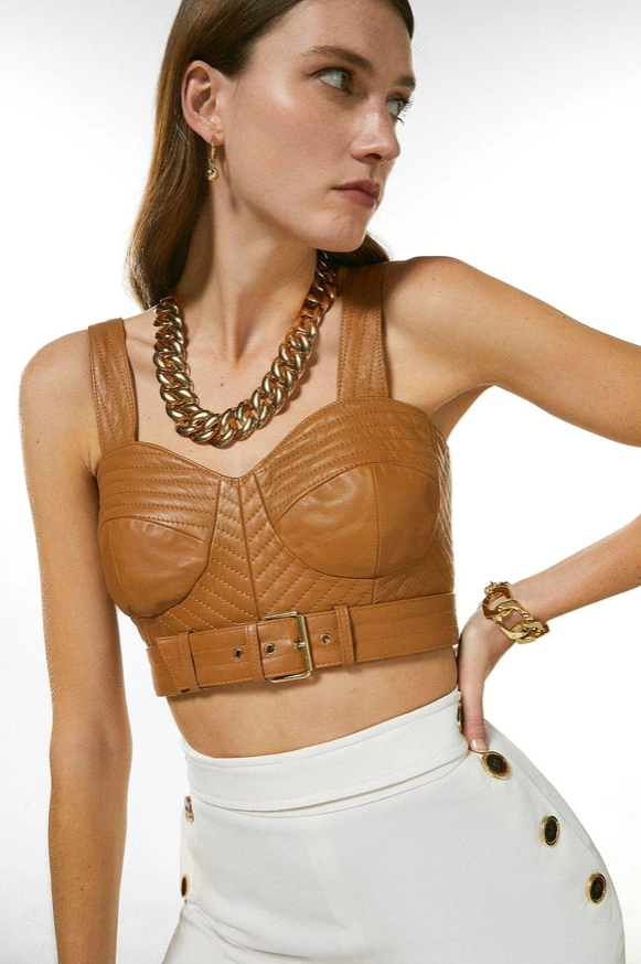 Cashew stitched leather bralet, Karen Millen