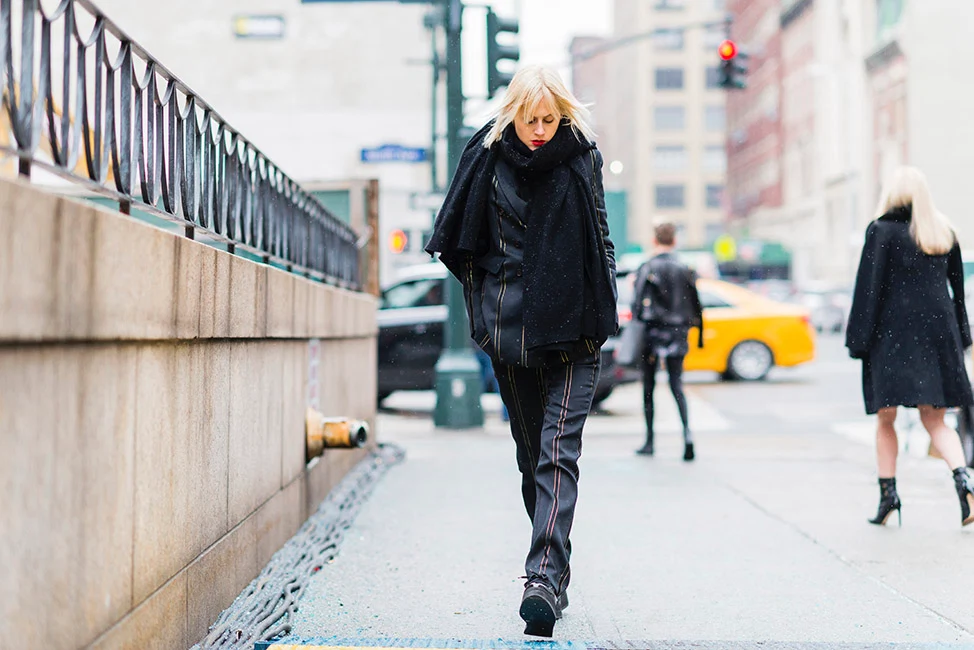 There are just a few simple rules to remember when considering head-to-toe black, the first of which is texture. This is so important I want to write the word texture in caps, but I’m not a shouty person so I won’t. But texture is the sartorial key to unlocking the secret of making this colour’sing. Mixing materials allows each element of your outfit to stand out in its own right. Imagine?combining?a lace dress with?leather leggings and?a cashmere cardigan. How much more visually interesting is that than a black cotton top and matching skirt?
