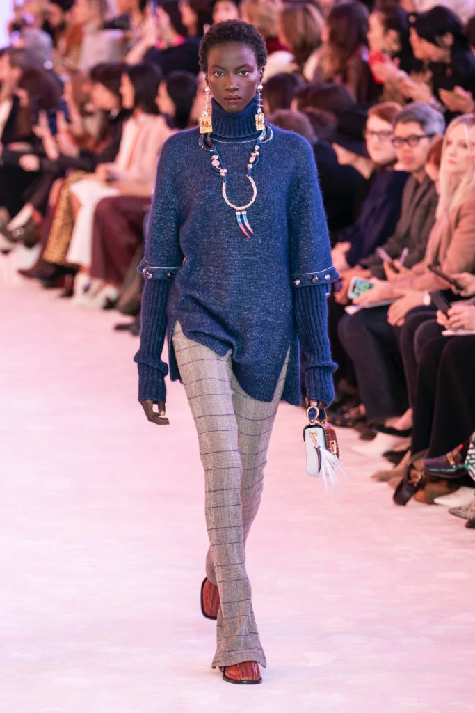 That old cliché of looking back to move forward has worked a treat for Slimane. Similarly, Natacha Ramsay-Levi is reimagining the traditional codes of the Chloé house for its new customers. The horse motifs and equestrian influences of old are emerging again, but this time around, in different guises: a beautifully cut riding jacket in twill, a military topcoat in Prince of Wales check. Again, these are clothes made for women who need serviceable wardrobes but refuse to sacrifice aesthetics to have it.