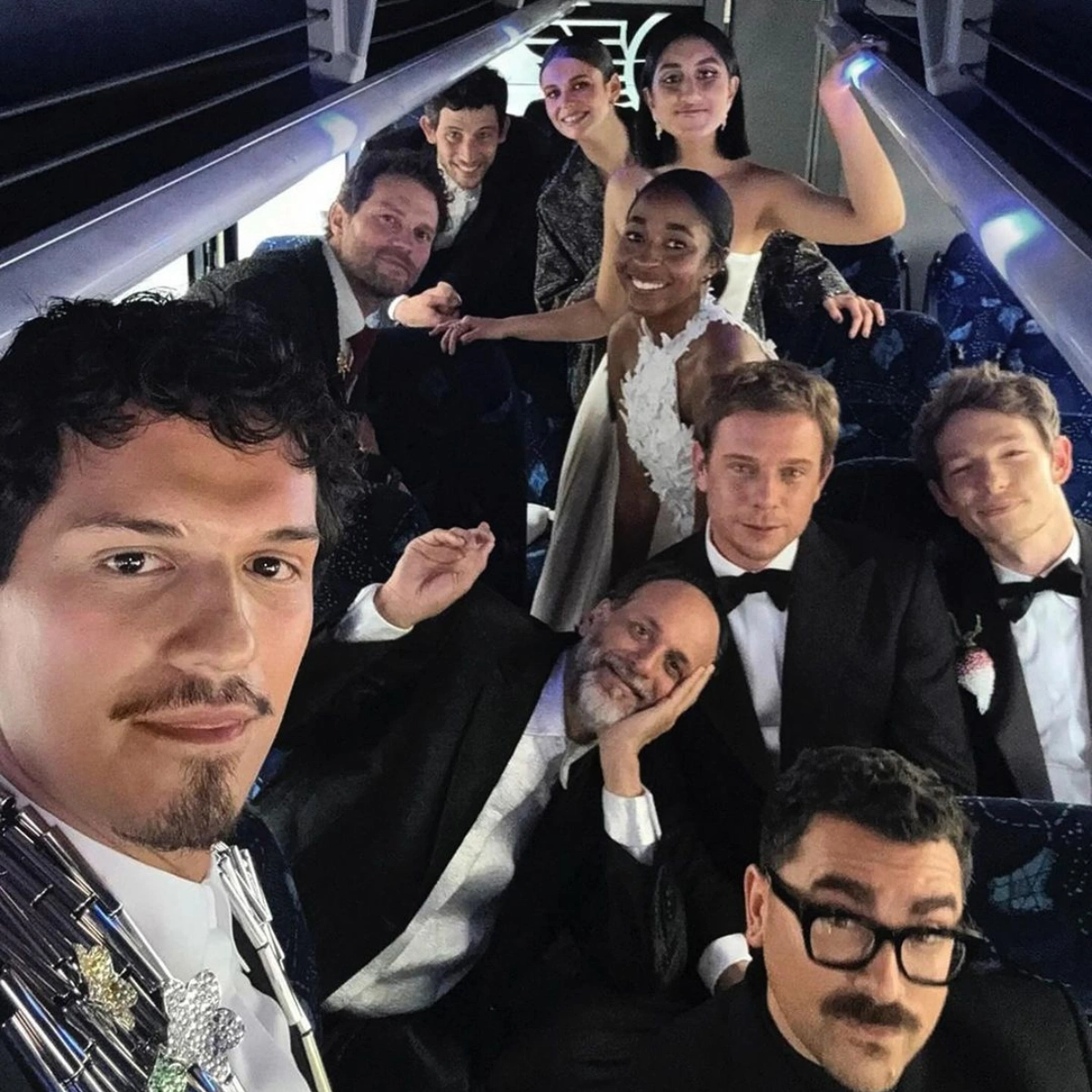 Groff, on the other hand, chose a Venetian wool classic blazer with blood crystal turbo embellishment and Venetian wool straight-leg trousers. Very dapper.