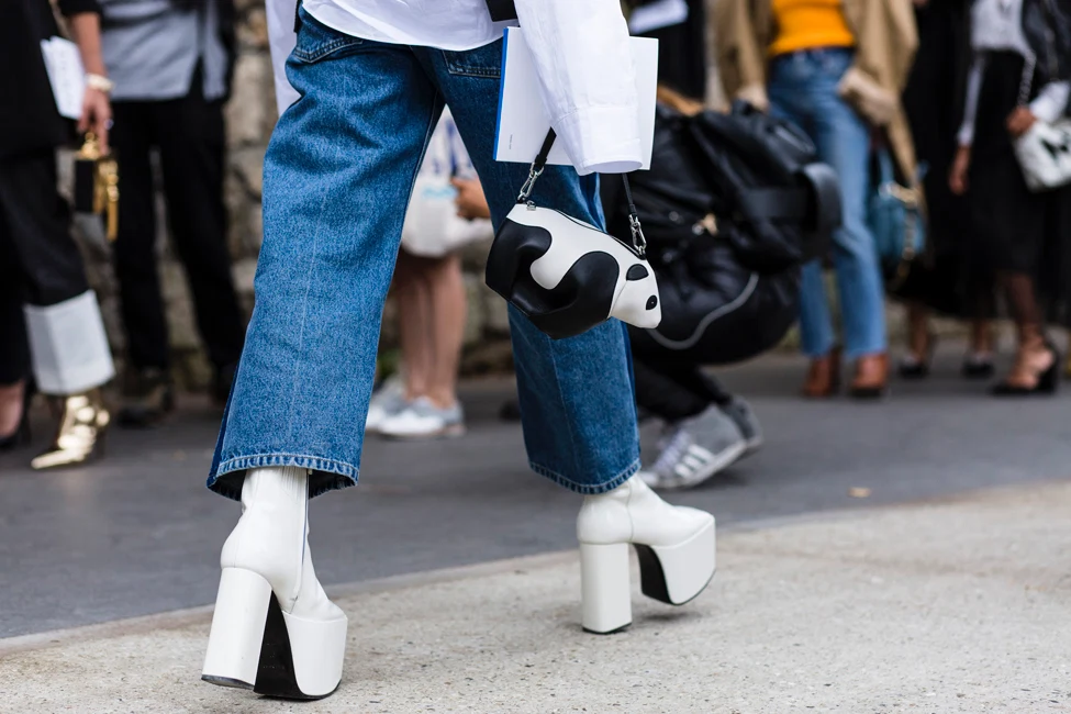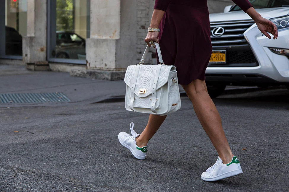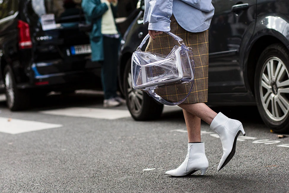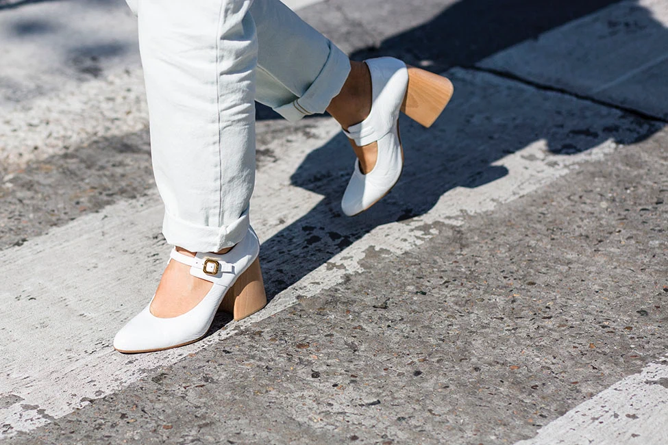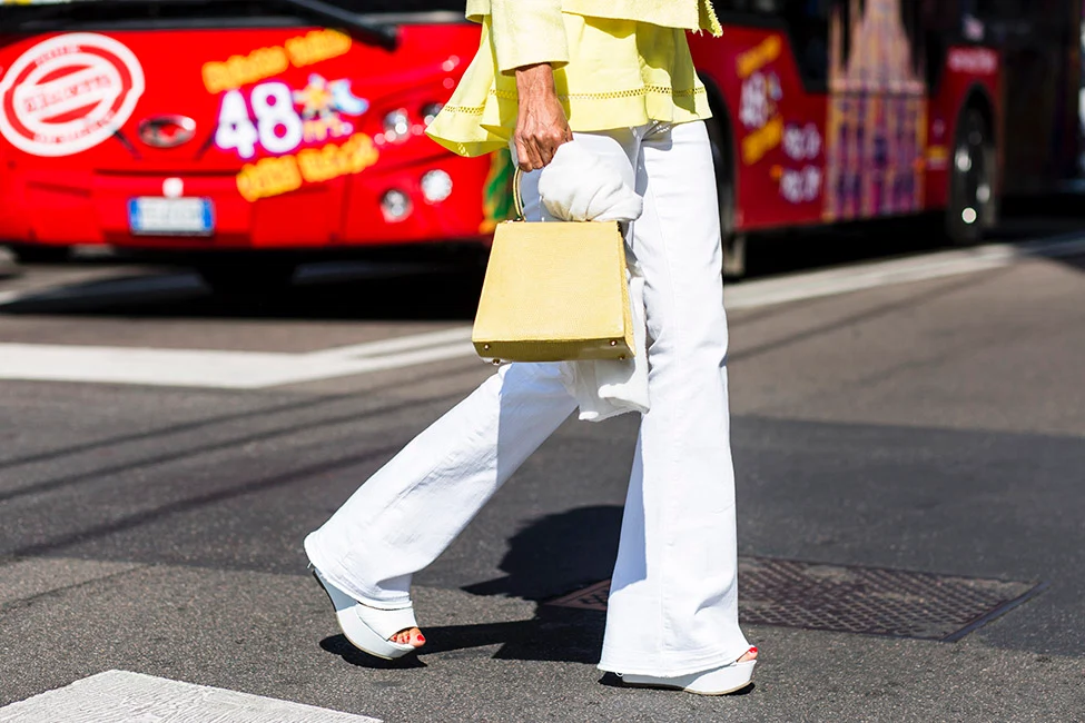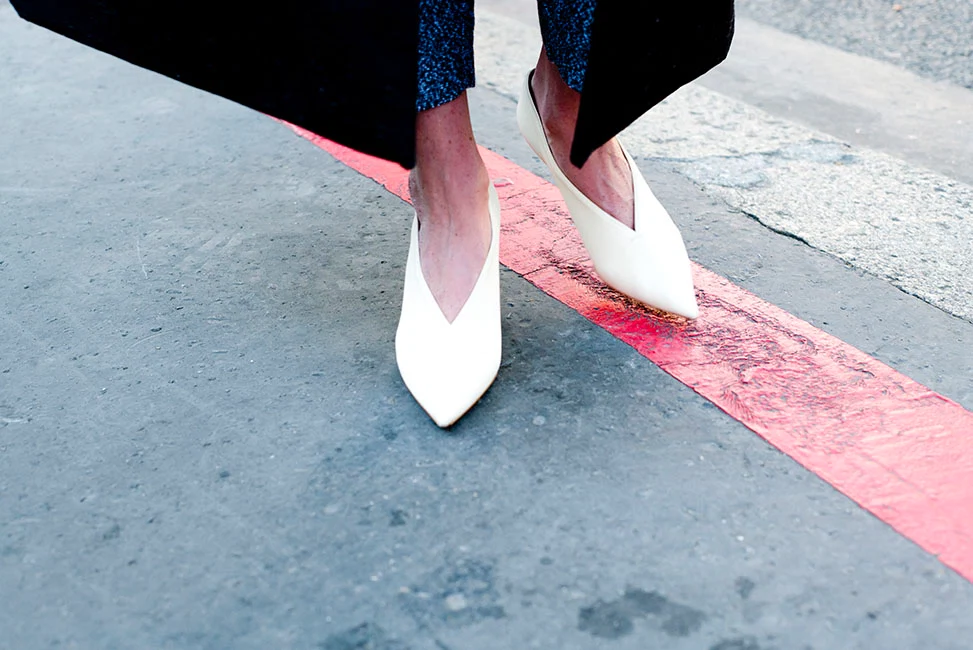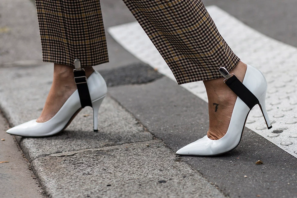 Victoria Beckham has been sporting matching white bags and shoes over the past few months. White heels, which?were once considered a trashy Temple Bar-style accessory, are now adding a purity and a classiness to shades such as’merlot and camel. I think the trick to translating white accessories from cheap to chic is to pair them with colours?that have depth and pieces that are a little oversized or fluid (not tight and short). Where Beckham goes, many follow, and the stars of the street have also embraced this trend with gusto.?Some are?a little more flamboyant in their styling than I would be (see directly below), but that’s part of the fun of street style, while others keep it simple in’reliable monochrome.