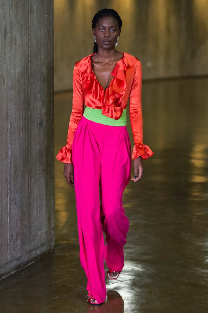 The energy and vitality of ’80s beach culture was also channelled at Etro, Chloé and Fendi among others. Tropical shades, paisley prints, bandeau tops and floaty kaftans had a “Club Tropicana” Technicolor glamour to them. The mood was optimistic, and maybe that’s at the heart of why women in 2019 want ’80s-inspired fashion – the sense of optimism, energy and fun it brings. What could be more empowering than that?
