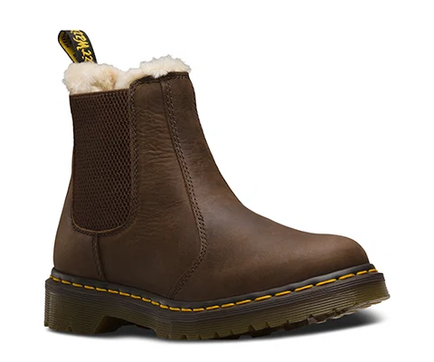 Faux-fur lined dark brown leather boots by Dr Martens, €180 at drmartens.com