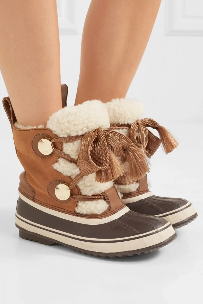 Sorel Crosta leather-trimmed suede and shearling boots by Chloe, €390 at net-a-porter.com