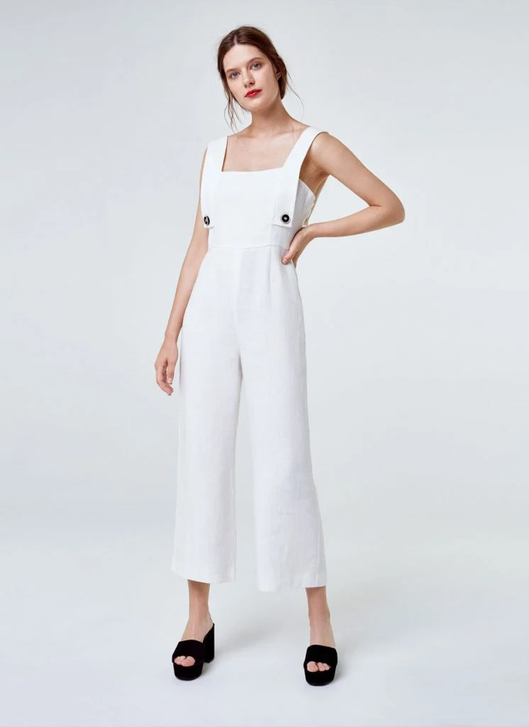 Crisp linen and clean lines. These overalls are simply stunning; understated chic at its best. I love the minimal detailing in the form of two exposed buttons.