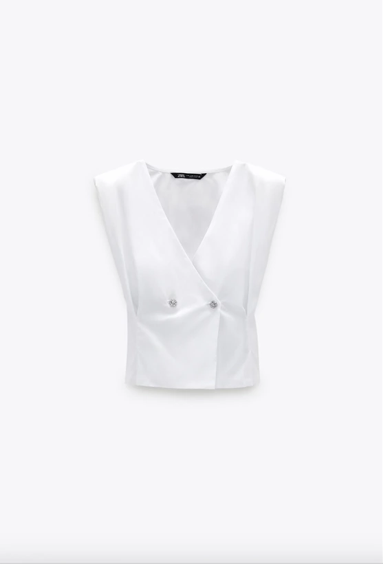Poplin top with shoulder pads, €29.95