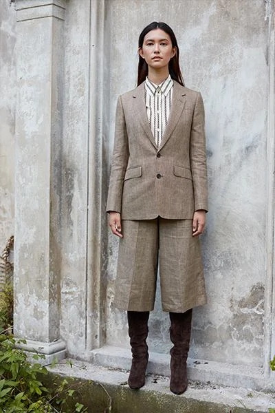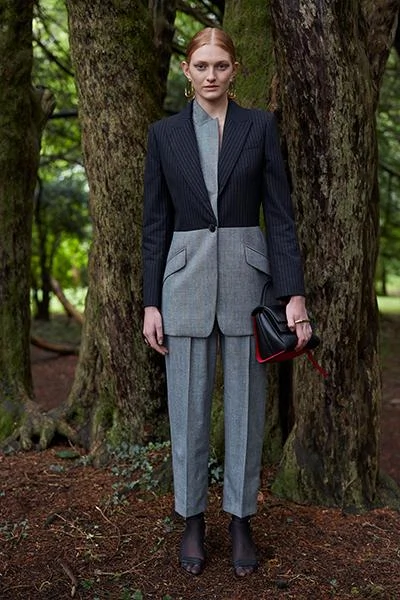 Suits are the ultimate power play and designers are giving you a choice with a wide range of interpretations. JW Anderson is producing his signature directional fits with suit pants that cuff at the ankle. Celine is going 1970s businesswoman with its relaxed shape and city shorts. And Alexander McQueen means business with a treble collar grey and pinstripe mix.
