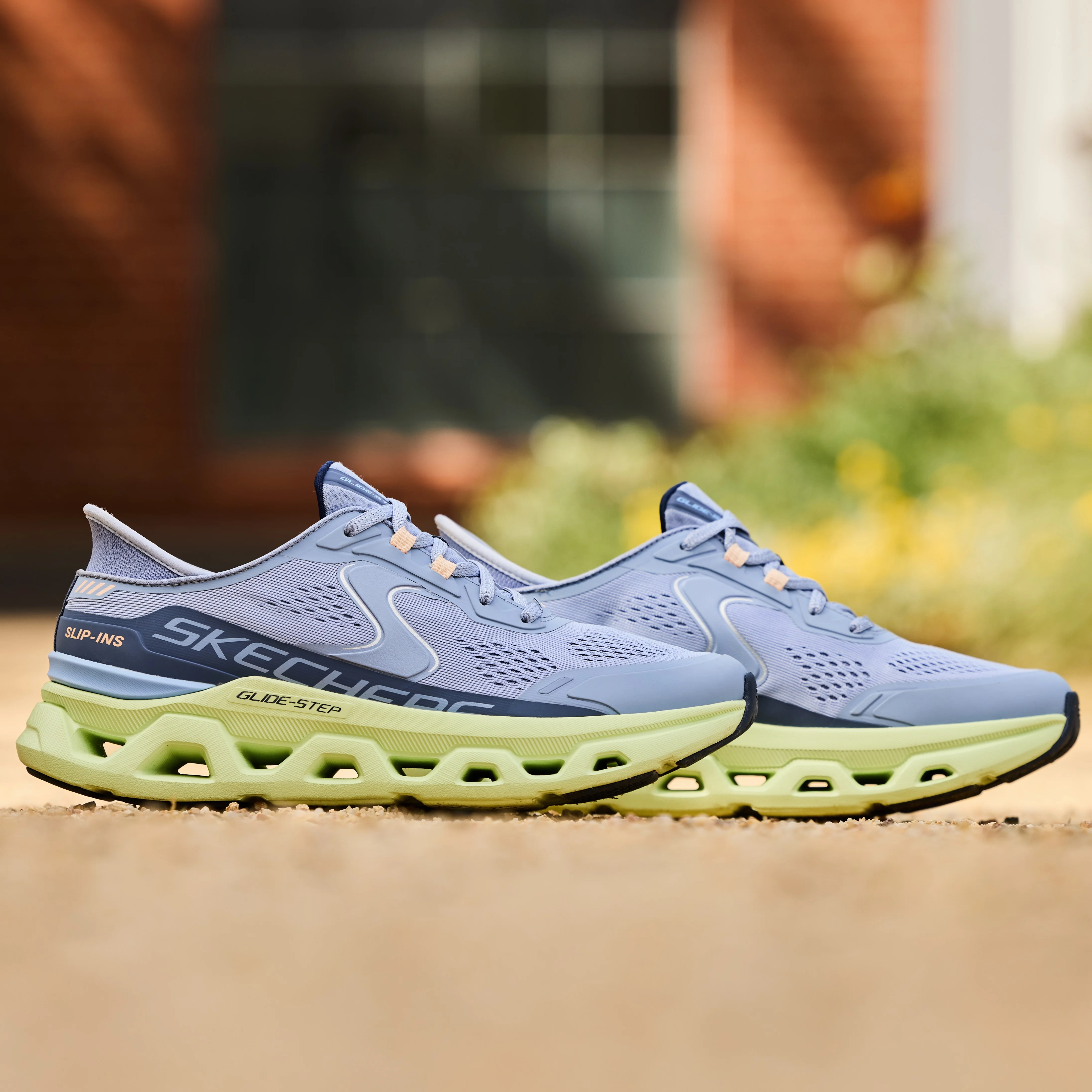 Skechers Slip-ins: Glide-Step Altus – Adrenaline Rush, €115, provide smooth cushioned comfort. Totally vegan, the design features a breathable monomesh upper with adjustable laces, a Skechers Air-Cooled Memory Foam® comfort insole, and a Glide-Step® geometric cushioned midsole.