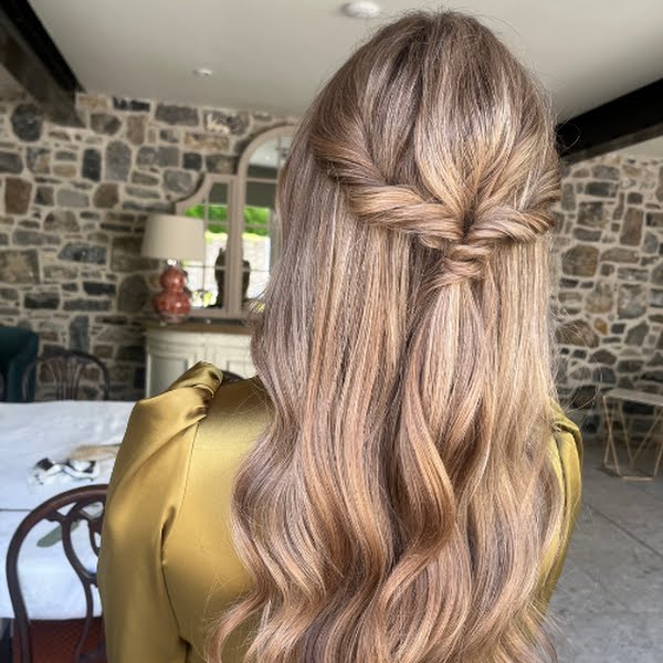 “For my brides with short hair, I would suggest a short textured wave or a soft half-up, half-down. Those look so elegant and are quite effortless. For those with long hair, that don’t want a full updo, I also suggest half-up, half-down.” This style is definitely in Melanie’s wheelhouse (although I may be a bit biased as it’s the style she did for my wedding day).
