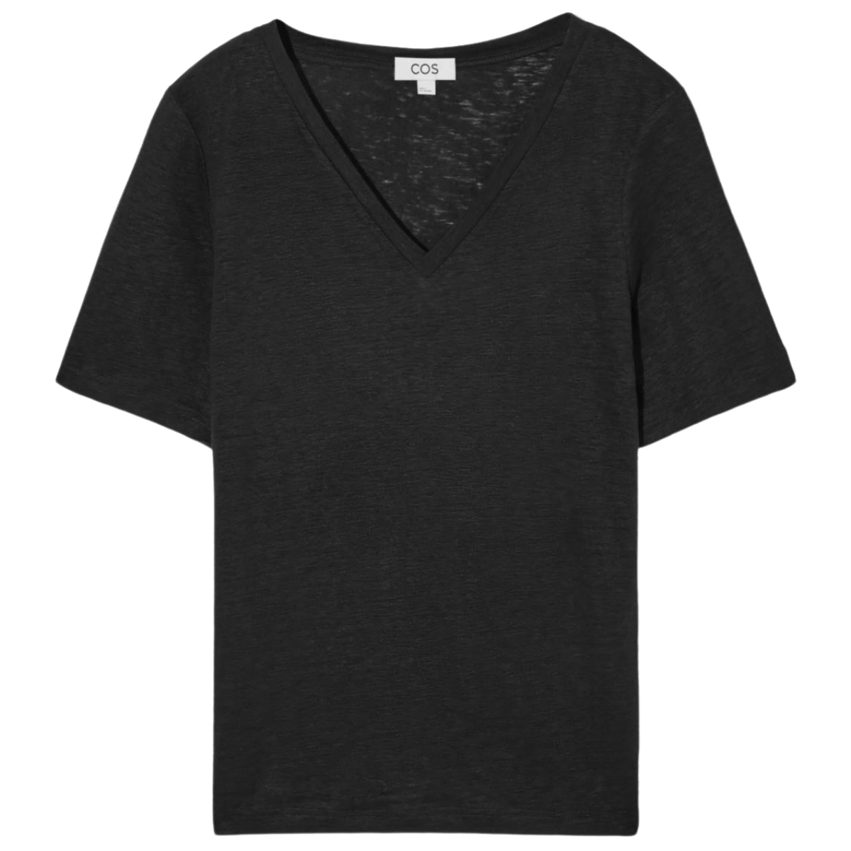 A linen tee is essential and goes with everything. Even though I do love a sparkling white tee, I tend to go for black because it is easy to dress up and down and is a low-maintenance colour.