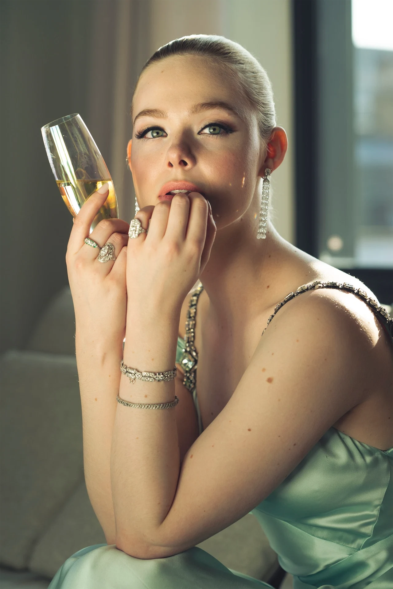 Currently filming season two of The Great in London, Elle attended the Golden Globes virtually last night with the assistance of her hair and make-up artists from The Great, Lorraine Glynn and Erin Ayanian Monroe, meaning her signature peaches and cream skin and regal hair were in place.