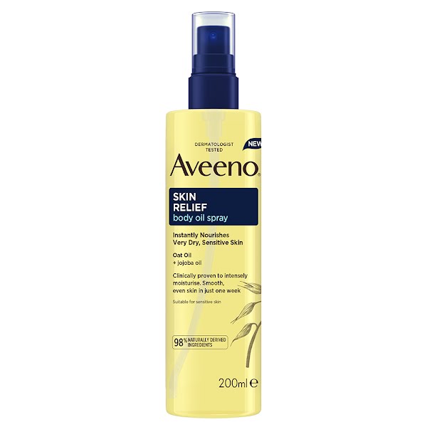 Enter the Aveeno Skin Relief Body Oil Spray. Because of my tempestuous skin, I’d previously avoided body oils, for many of them are packed with perfumed ingredients and I tend to stick to plain Jane skincare. But this oil is hypoallergenic* and suitable for dry and sensitive skin.