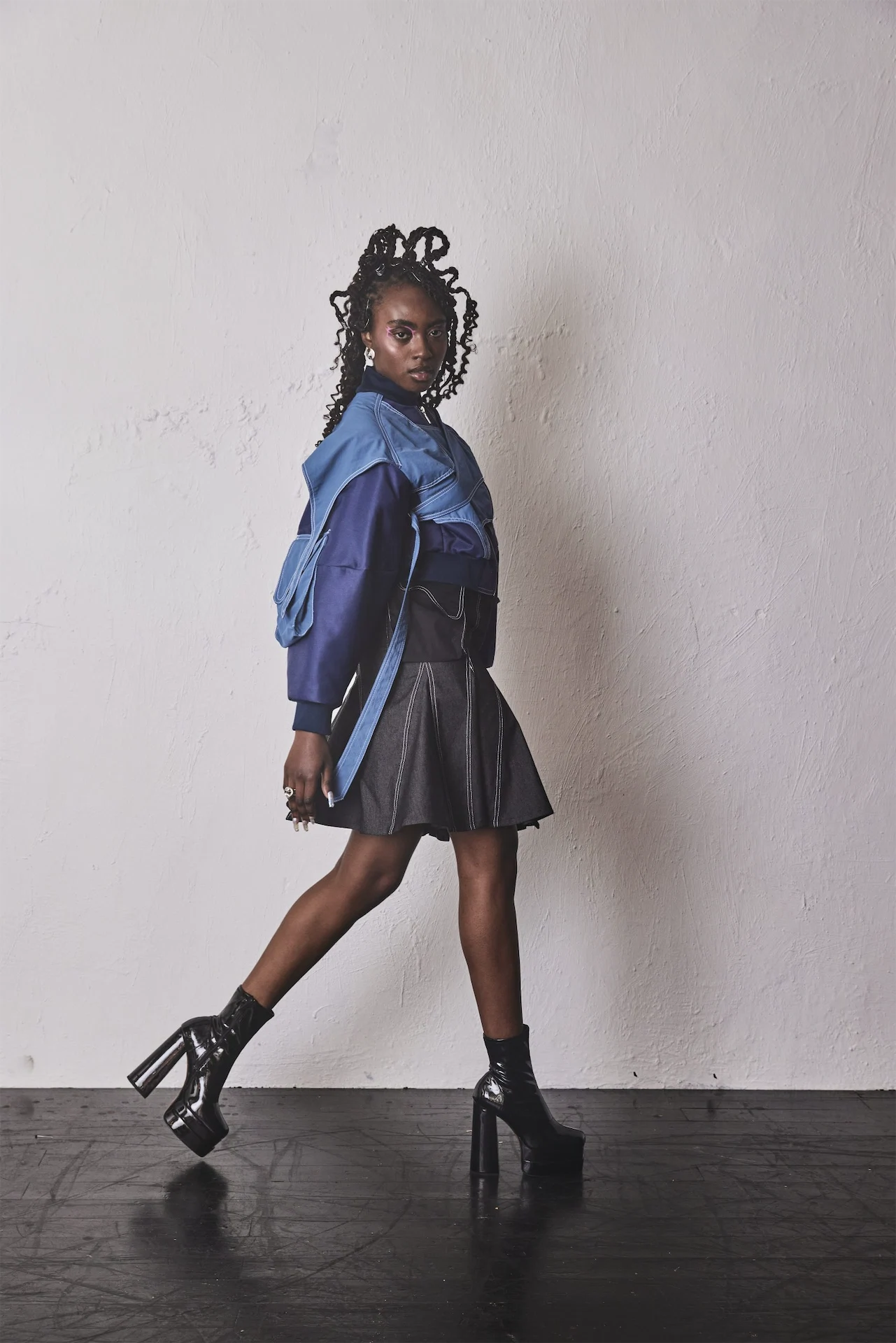 My mission as a designer and with my brand is to create clothing that takes the wearer away from their old self. I’ve always referenced motorcycle clothing, and car interiors, to convey that feeling of clothing being almost like a mode of transport. They should drive you forward, they should ultimately make you feel different, empowered, safe. Vehicles always have hard exteriors, but the interiors are always softer, more comfortable.