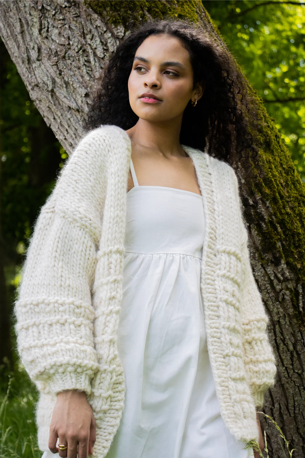 I stock primarily hand-knit garments. Sometimes I will release a silk scarf with a pattern I’ve made that ties into the collection and I am excited to say that my next collection will expand to some machine-knit pieces. My garments are quite heavy due to the yarns I use and I take a long time when sourcing materials so that the garments are made in the highest quality with responsible materials. I also love getting feedback from my customers It’s because of customer feedback that in my AW23 collection I will be launching two knit pieces made from cotton yarn – I have had a few people commission me for cotton garments specifically because they are allergic to wool. That’s the great thing about running a smaller business, I really get to know what my customer wants and I hope in return they feel like they know me and my brand mission too.