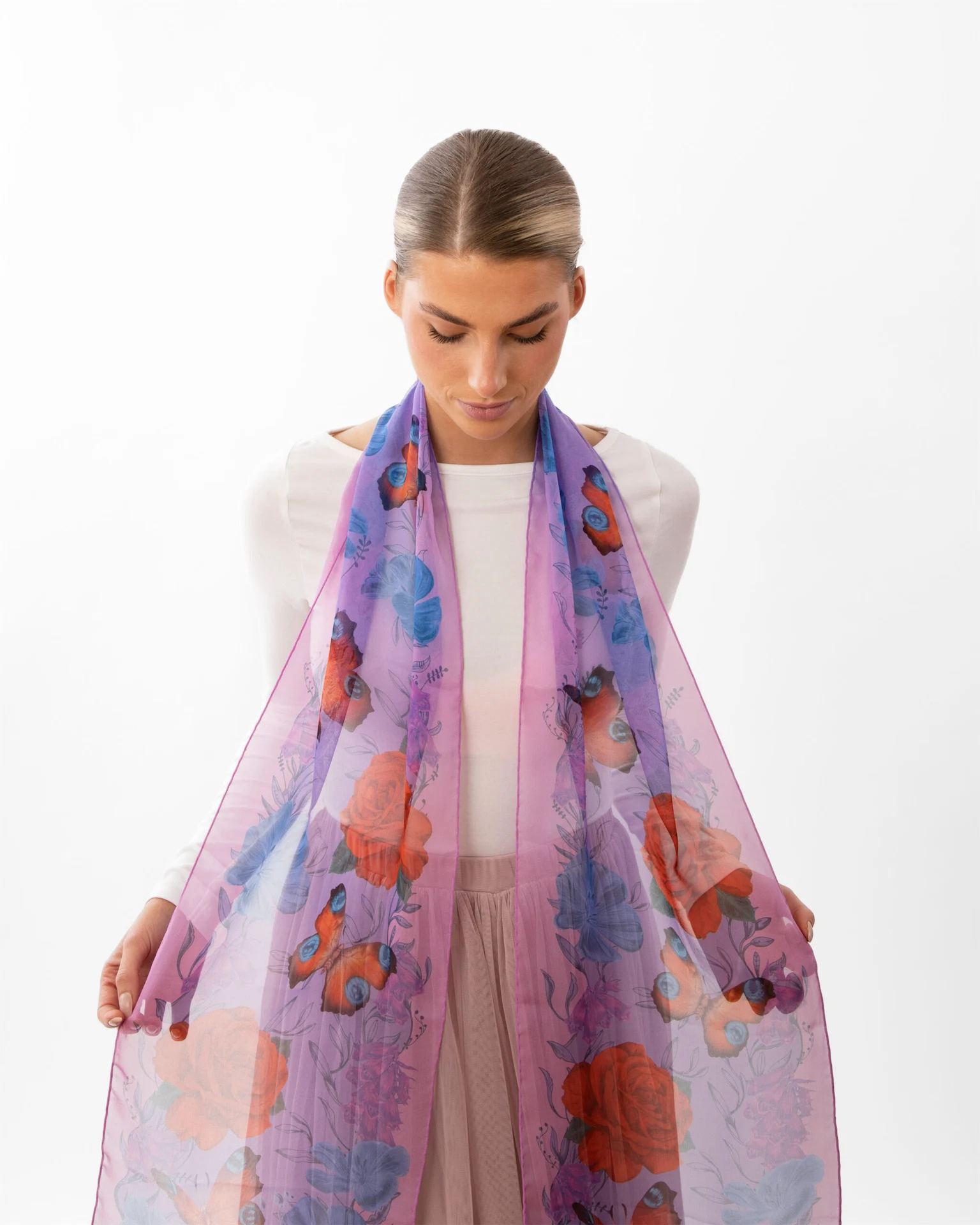 In 2022, I founded Georgina O’Hanlon Illustration (GOHI), embarking on this creative journey after years of honing my skills as a graphic designer, both as a full-time professional and a freelance artist. My artistic journey began at NCAD, where I graduated in 2012, always garnering praise for my drawing abilities from a young age. In a world increasingly dominated by computer-generated graphics, I was steadfast in my desire for my brand to celebrate the timeless art of hand-drawn illustrations. To complement the intricate craftsmanship that defined my work, it was imperative to me that my creations be environmentally sustainable and cherished by those who acquire them. Thus, my journey began with silk as the ideal canvas, leading to the development of my exquisite silk scarves.