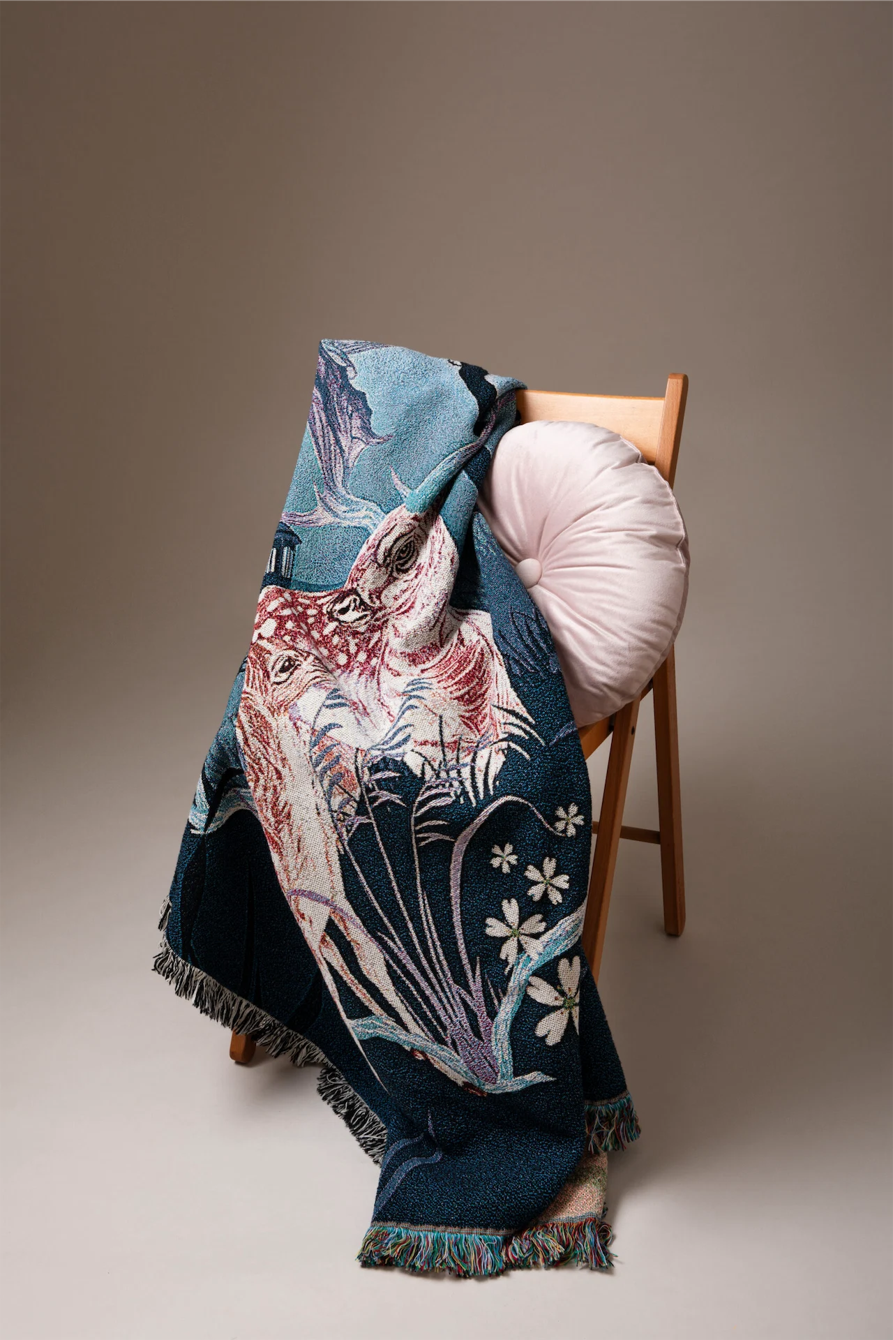 I started my creative journey with silk scarves, fueled by my deep admiration for Hermès. One of my favourite pastimes has always been gazing at the exquisite artwork showcased in the silk adorning the Brown Thomas windows. Over time, my artistic exploration expanded to crafting luxurious prints that could embellish your living space and recently, I ventured into experimenting with homewares. My latest endeavour was the launch of my couture tea towels, which quickly became abode essentials, selling out upon their release. Furthermore, I’m thrilled to announce my collaboration with Temple Street Children’s Hospital. Together, we’ve created a collection of 100% cotton woven art blankets, each adorned with my unique hand-drawn artwork. This time, the featured piece showcases a graceful stag and its fawn, adding a touch of elegance to your surroundings.