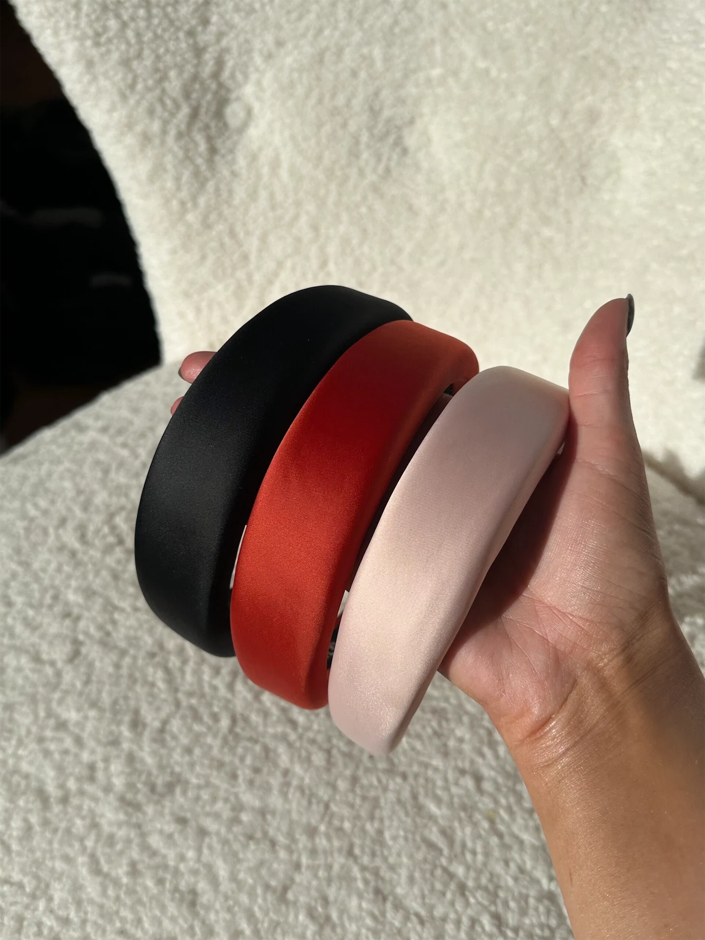 We have launched two bag designs so far. The Everything Bag is your everyday crossbody bag, perfect for on the go. It also comes with two interchangeable straps for two completely different looks making it super versatile. Our second design is the Essentials Bag, which is your perfect shoulder bag. The Essentials bag is designed to fit all your essentials making it cute and practical. We also recently introduced hairbands to our collection, which are made from 100% recycled polyester and are the perfect way to complete your look. Our products are available in three gorgeous shades – black, nude pink and bright orange.