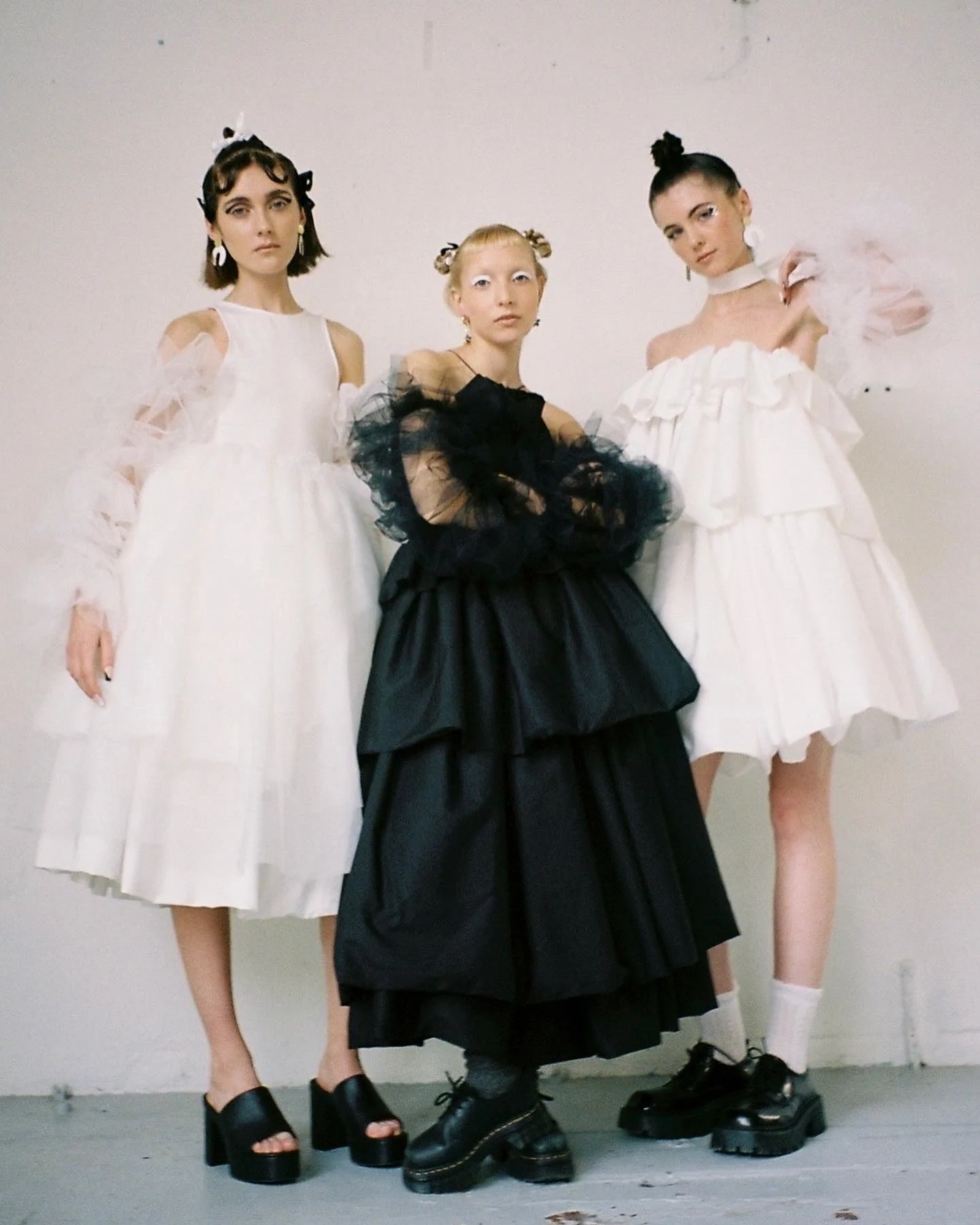 Our stock ranges from voluminous tulle and cotton skirt sets and sleeves – which are all modular, meaning they can be worn in many different ways (tops as skirts, skirts as collars, mix-and-match sleeve sets) and our signature sculptural floral tops and boleros with exaggerated bow details.