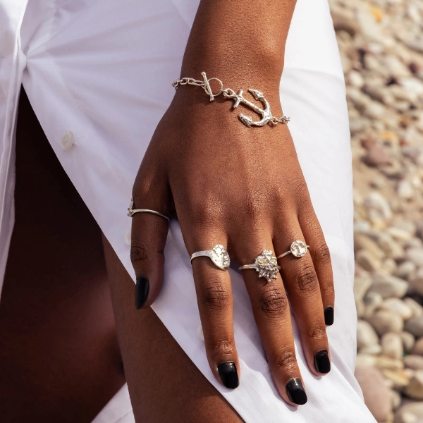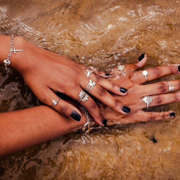 That hasn’t changed much since I was a young adult. My art tutor in college used to say that I couldn’t just draw skulls and planets for the rest of my life but I said, ‘nay’! I love the contrast of rough and elegance so even my crowns will have a textured finish giving it an ancient sort of vibe, or a hammered pendant is polished to have a slick glossy finish so it sparkles in the sun. I have quite a large range of rings, necklaces, earrings and bracelets within these styles on my website. I am always an open to inspiration from other sources and working on designing pieces that are different to my past collections. For example I have a brand new collection which is inspired by Irish maritime history with a touch of sailor aesthetic including anchors, swords and night sky navigation. I also occasionally include some pieces that are a bit cheeky, like my ‘starcastic’ star boy necklace with his grumpy little face or the skulls of my exes rings and ear studs for some playfulness. Life does not have to be all serious, after all!