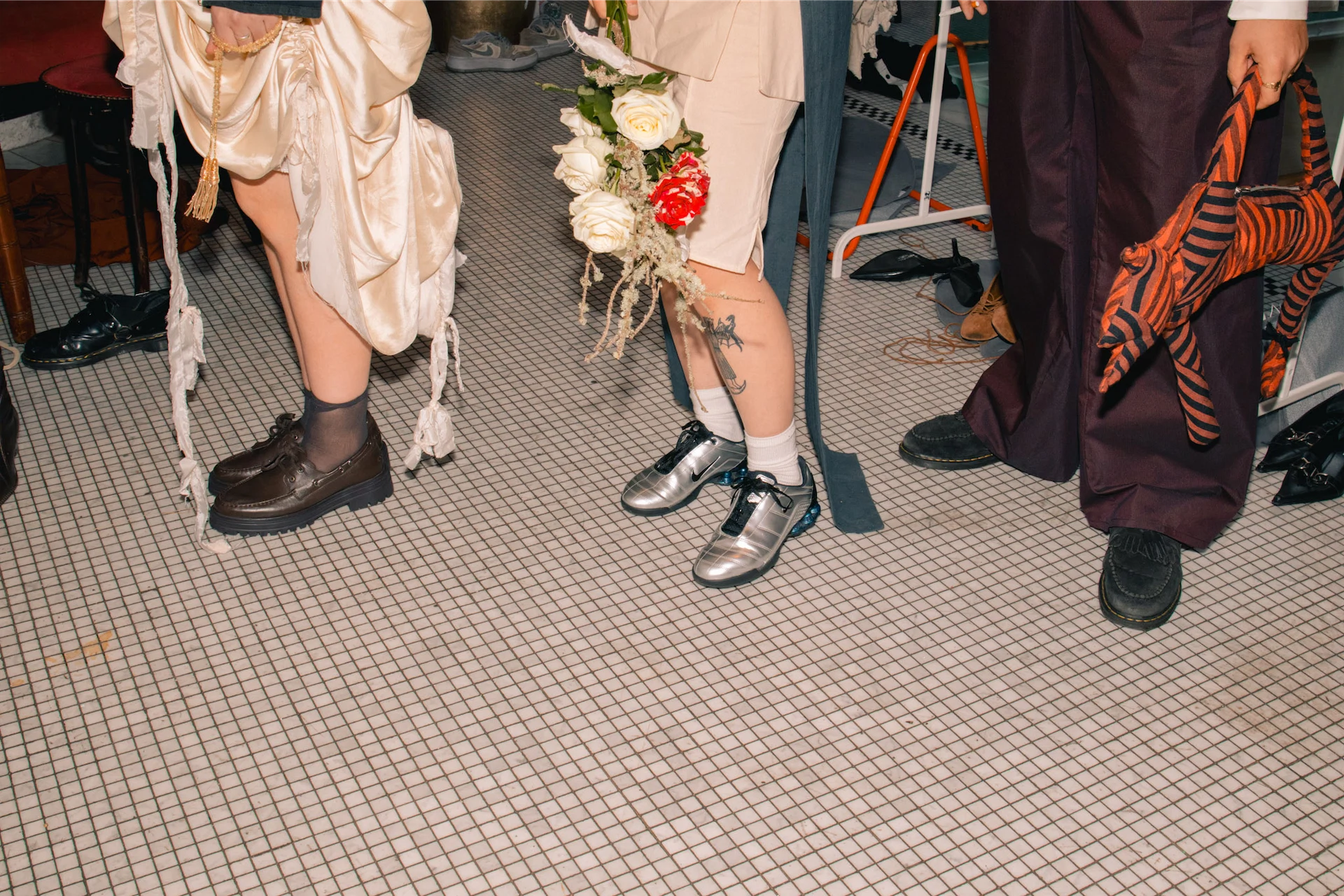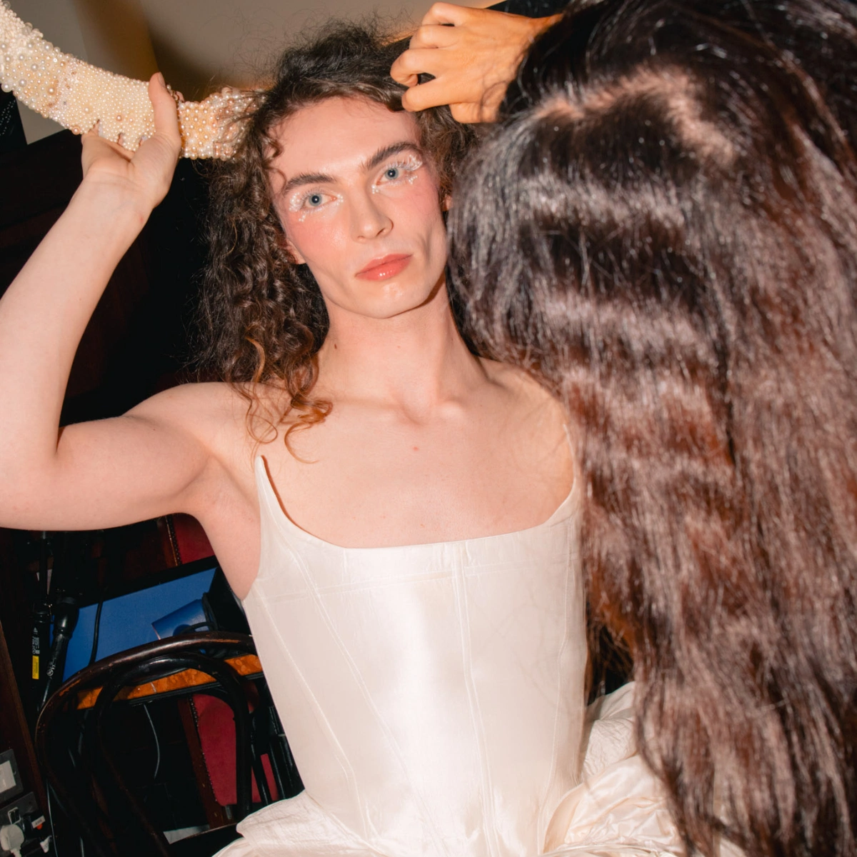 One of the week’s highlights was Ríon Hannora’s first solo show, Sex Before Marriage, which displayed a unisex bridal collection that included a number of reimagined vintage wedding dresses. The designer’s tongue-in-cheek collection, complete with branded condoms and bejewelled knife-headbands, playfully probed at Ireland’s fraught relationship with the institution of marriage, while showing what it means to ground value in eco-friendliness.