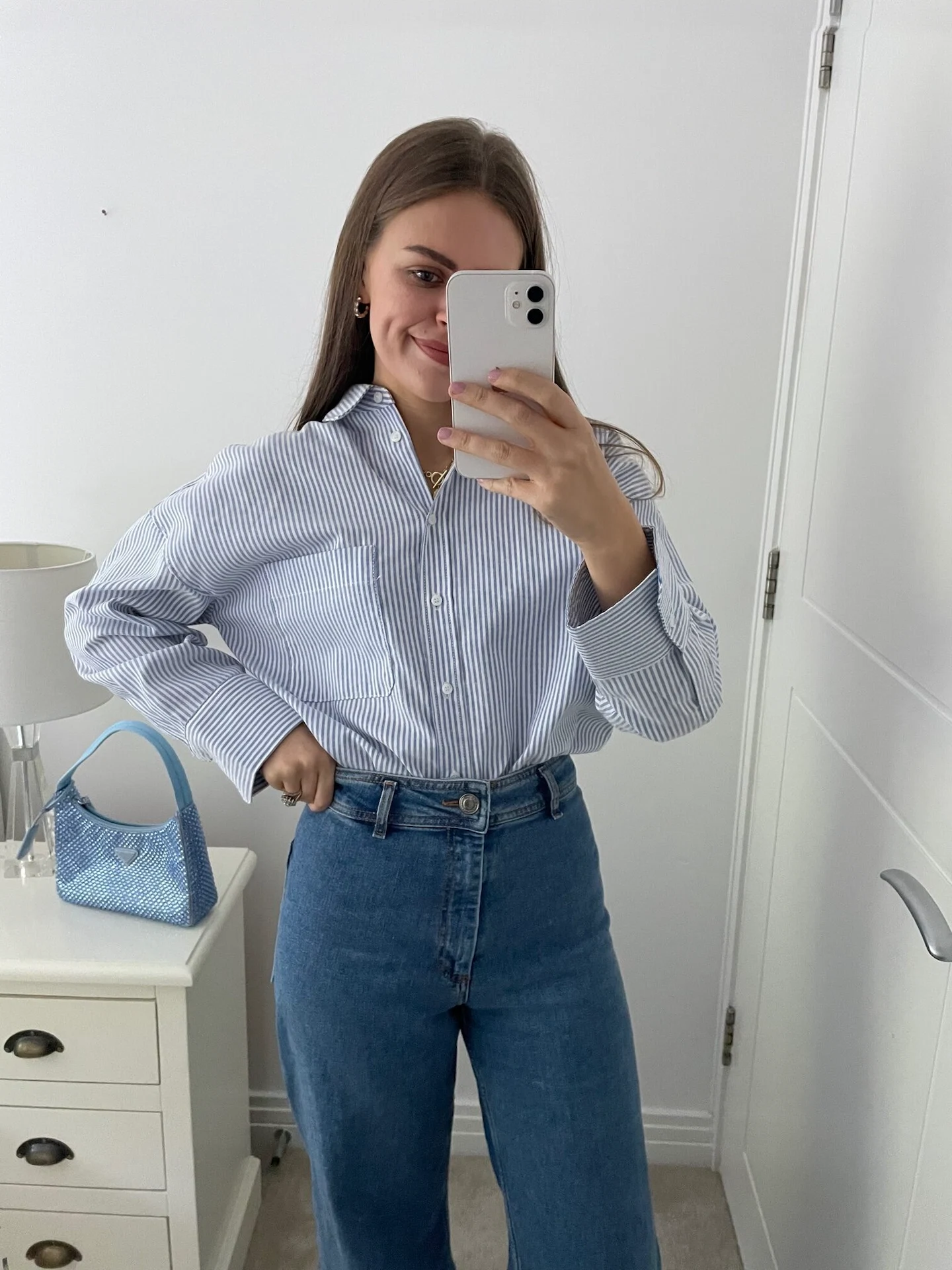 We are getting closer to the weekend! I love these easy-to-wear shirts from Zara for work. I have added fun accessories to today’s look. My blue Prada bag is one of the most special pieces in my wardrobe. I use it a lot as I like to get good wear out of it – there is no point saving items you love only for big occasions! Nearly all of my earrings are from Avoca, they are at a really good price point yet feel like great quality. This Thursday I am meeting friends after a full day in the office.