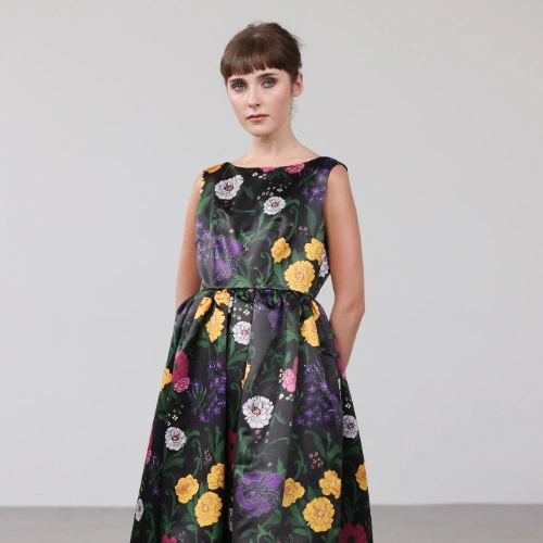 You will find dresses, jackets, tops, trousers and skirts with lots of colour and print, and the occasional black and white pieces for the people who don’t love a lot of colour. In recent collections, I have started to develop my own prints so you will see a lot of original prints across the website.