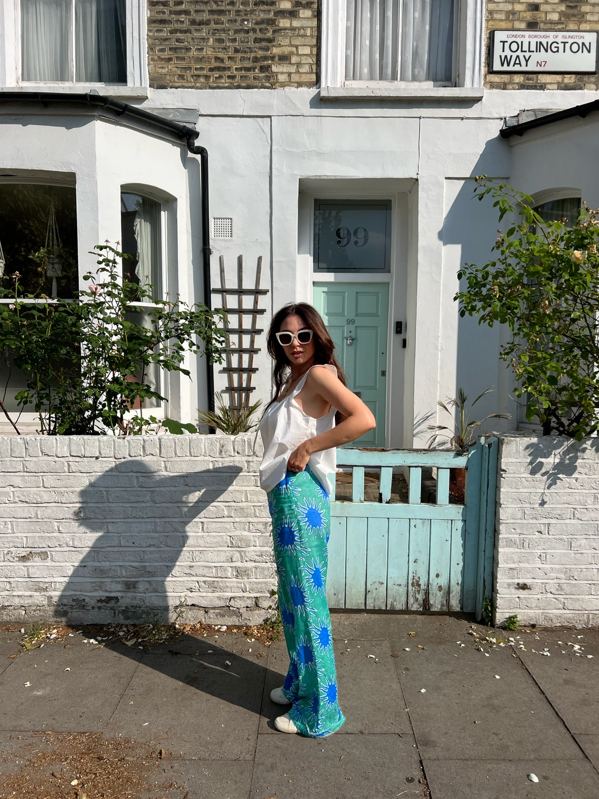 I’m staying local today so keeping it very casual! My top is a pyjama top from a brand called Deji Studios, my trousers are from the recent Mango x Simon Miller collection and my shoes are Supergas again – I just think they’re a great summer runner!