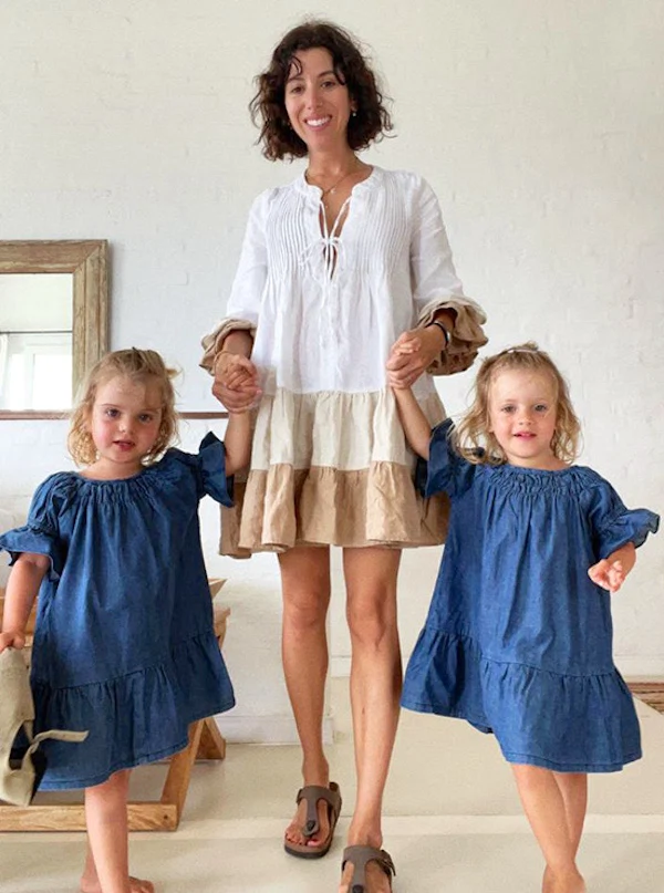 I love to start my week in an outfit that allows me to move freely between my family and work life. The Nina dress in 100% organic Belgian linen, worn here with my neutral Gizeh Birkenstocks, is the perfect stylish yet comfortable pairing. This dress, in the multi-taupe colourway, is ideal for transitioning from morning meetings to afternoon city strolls around Punta del Este later with my twin girls, Elena and Esmeralda.