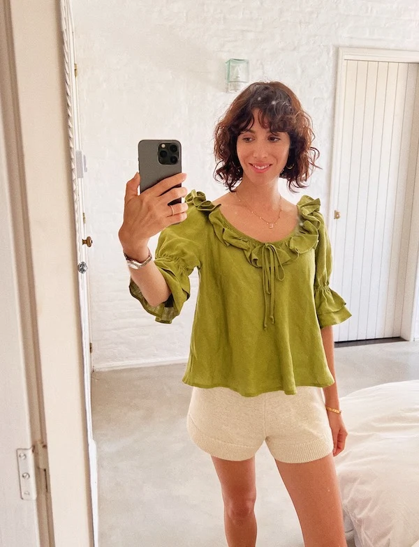 My home office is a real sanctuary for me. Whether I’m in London or Uruguay, I often find myself reaching for our Nicola top and Emilia shorts in teal, or Nicoletta trousers (for cooler days) to wear as a two-piece set. Our collection is designed with the dynamic lives of our customers in mind so that the pieces pair seamlessly, in single-coloured coordinate-style sets or, in mixed-colour pairings. A top-to-toe linen look is easy, timeless and transitional.