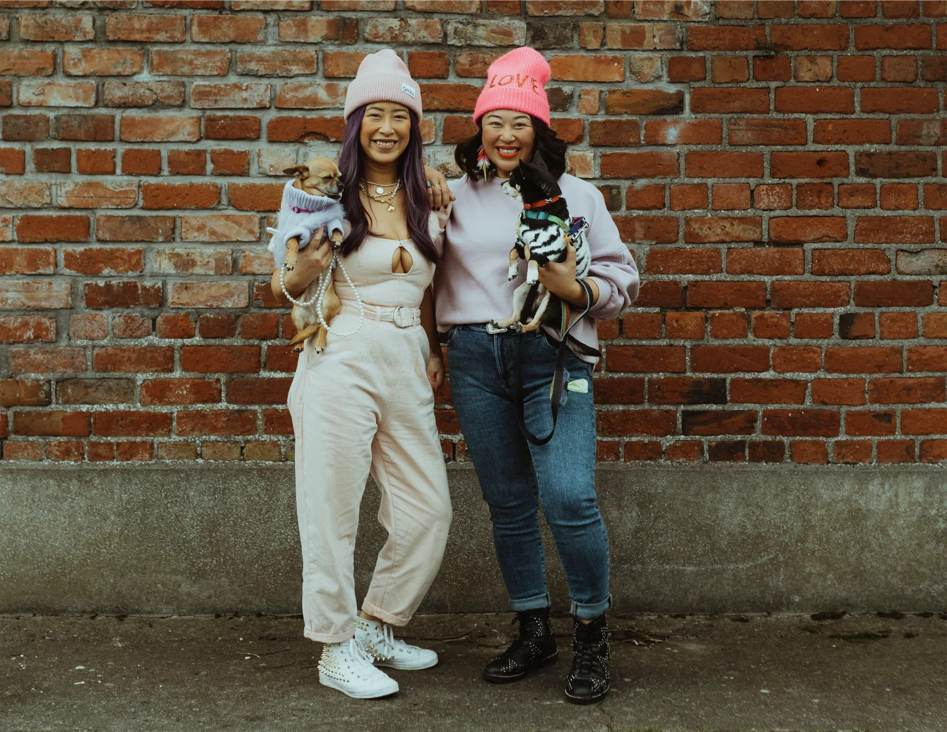When I have days off, I often go visit my sister and walk the dogs with her. I need family time to help me unwind. My sister Amanda and I hang out a lot because her dogs require walks and I love walking and catching up with her over a coffee. She’s super stylish and is so much fun to hang out with. Today I am wearing a baggy, oversized, lavender Penneys jumper. It only cost €2 so was an absolute bargain. I live in it! Here I’ve paired it with a birthday gift beanie from Dunnes Stores. I love beanies, especially this one. Bright pink and the logo ‘Love’ is what I am all about! Zara jeans are worn a lot this week. These black leather star-studded boots were bought in Arnotts in 2020 as a gift for me and I live in them all the time. Comfort is part of my aesthetic always. Melissa Curry’s jewellery collection is full of pops of colour to grab your attention… obsessed!