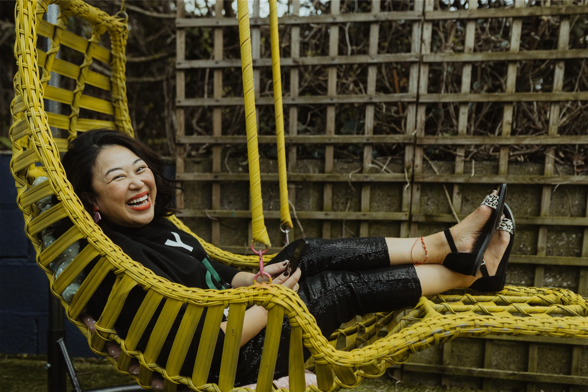 I am minding my sister’s dogs today. I have a day off so I’m just checking in with friends on my phone. Hanging out and lounging around the house means wearing really easy outfits. I love these harem pants, bought 12 years ago in H&M in Vancouver. I have a lot of great pieces that work well and travel well with me. Who doesn’t love a little sequin detailing too!? A Monki jumper that says ‘MY OWN BOSS’, allows me to feel like I have a power mantra. It is sunny today so I’m wearing my wide-fitted zebra print sandals from M&S. I’m just chilling out and relaxing, enjoying the good weather!