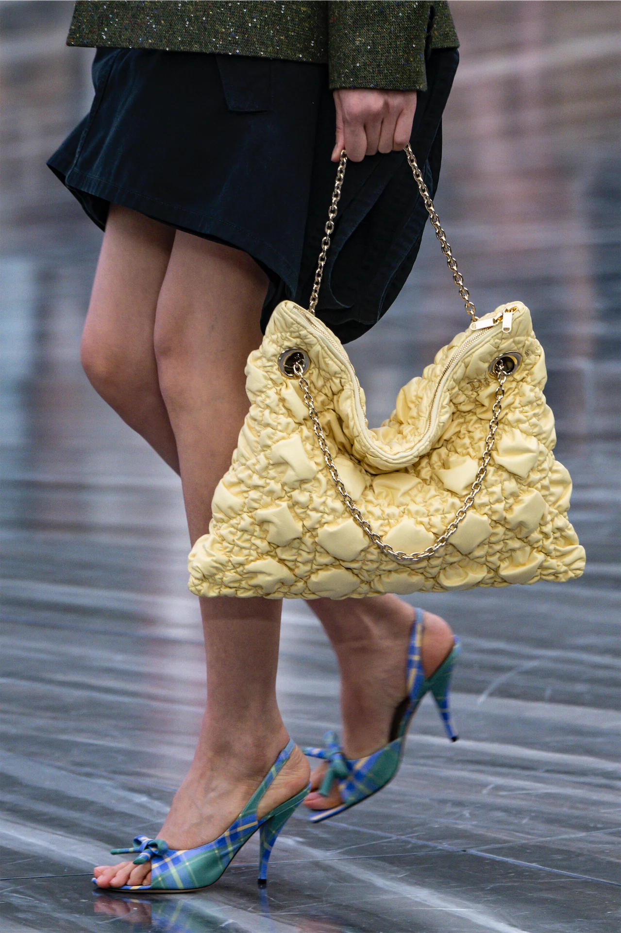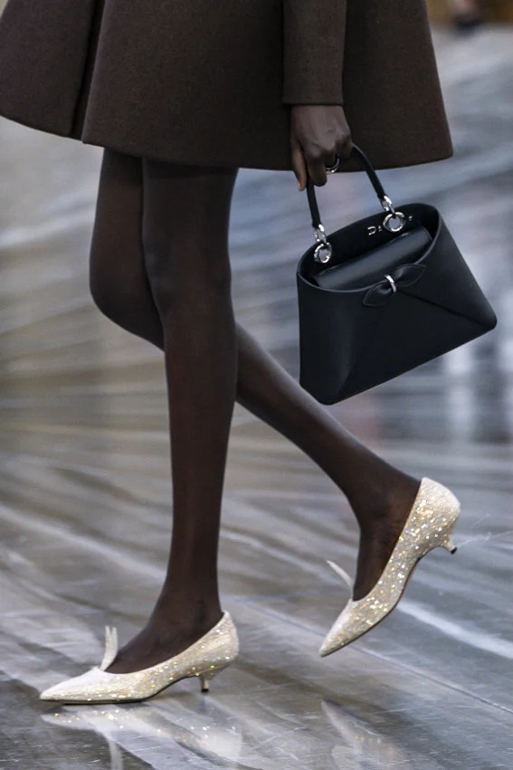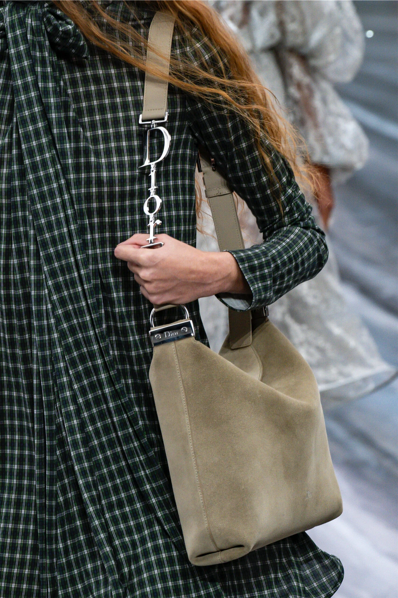 Accessories were the most coveted from the Dior collection and garnered a huge buzz across social media. Anderson brought his signature, playful narrative to the accessory line-up. Classic top-handle bags went single-handed, giving it an off-kilter feel, and were crowned the Cigale bag. Slouchy suede bags finished off with gold monogrammed logo hardware spelling Dior came instant TikTok faves.