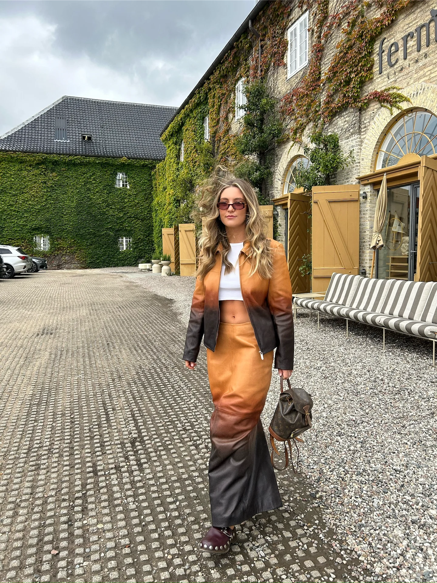 Sustainability always plays a big part in CPHFW, but even more so this year. We saw a lot of rented, vintage and full secondhand looks, like on Verona Farrell, who is partnering with Sellpy to do secondhand fashion month! I adore this look on Johanna Dooley so much. The beautiful Saks Potts set is rented from Rentage, a Danish rental company, the bag is rented from greens are good for you (the company we set up together, so she got a good deal!) and the shoes were thrifted Ganni. It doesn’t get much more Copenhagen than that! The colours beautifully melt together giving us another autumnal-inspired look. Dare I say, it made me excited for autumn!?
