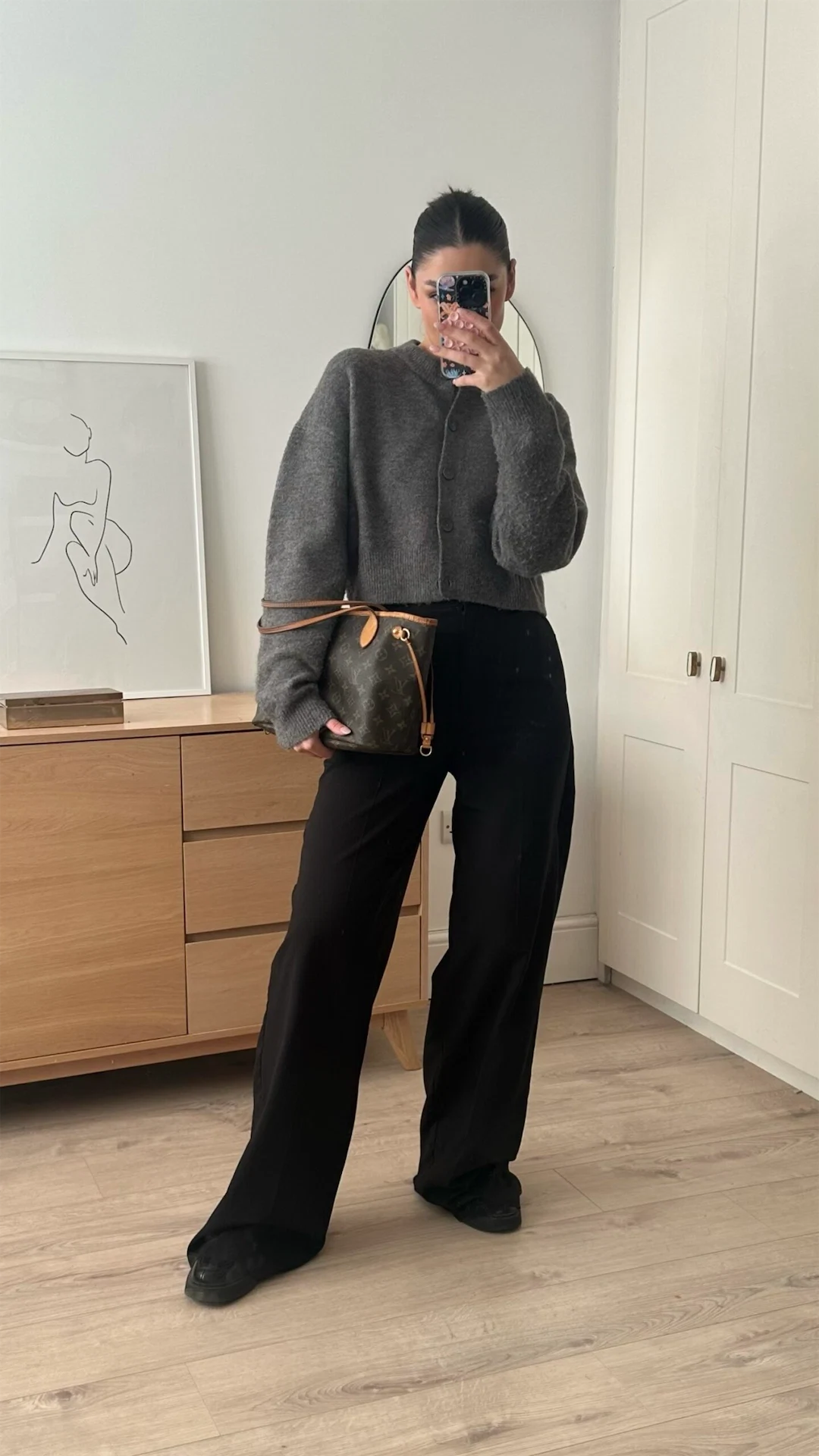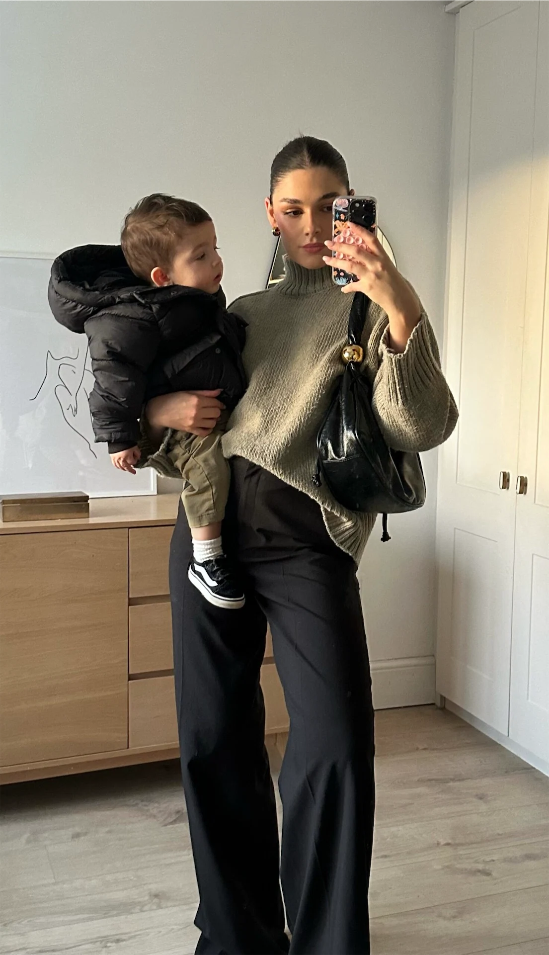 I started the week hanging out with my son Louie at soft play followed by some errands and admin so I opted for a simple cosy knit and wide-leg pants. You will never catch me without a hoop earring, it’s my go-to accessory. I feel like they elevate every outfit and since I’m a die-hard slick-bun girl, they are a must for adding a little something something. I’ve gotten to that phase of motherhood where I don’t need to carry everything and anything when we go out so I’ve been loving dressing up my looks with cute bags again. This was something I really missed when I had to carry the kitchen sink in my giant baby bag! Louie and I pretty much always have coordinating looks but most of the time he’s better dressed than me!