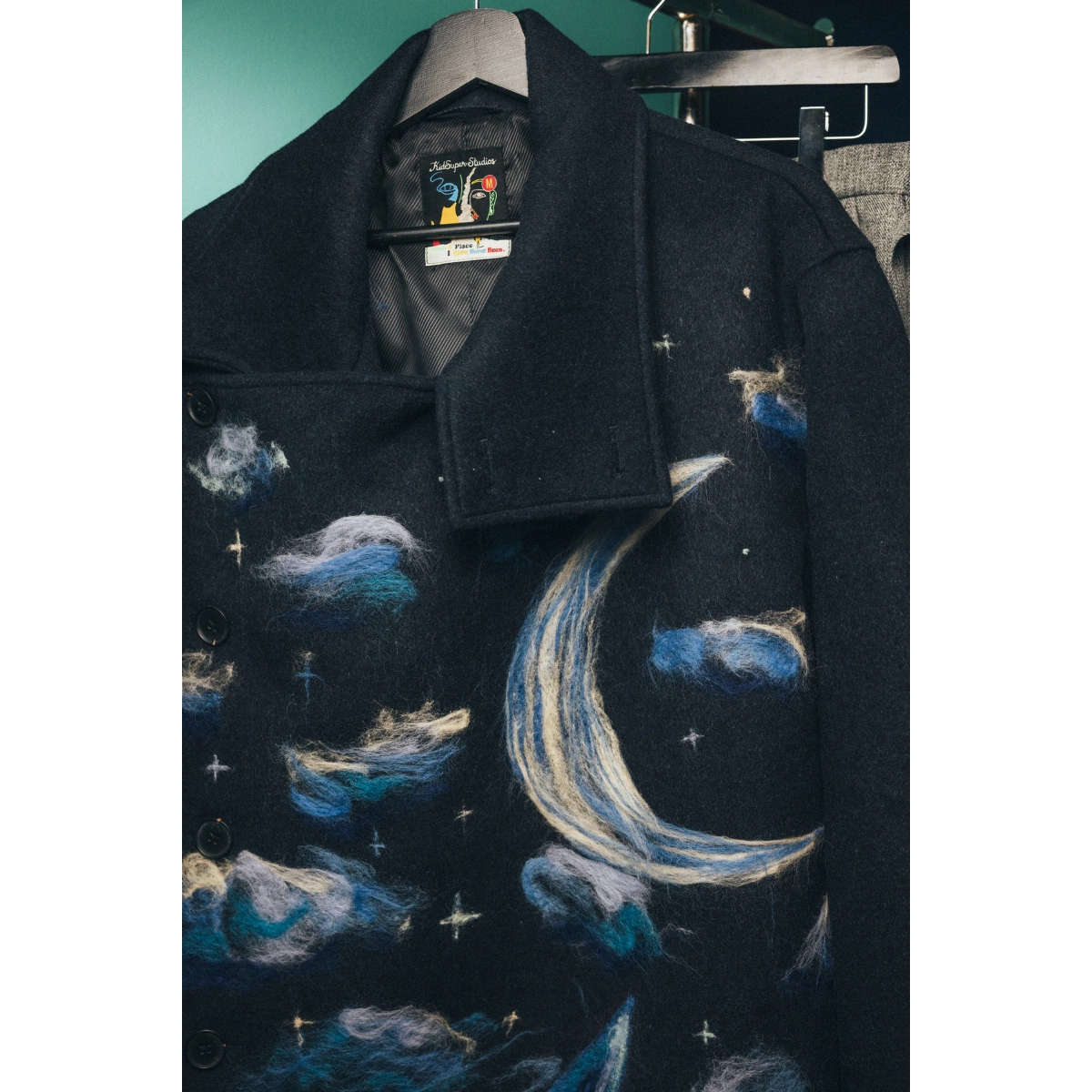 This one was smaller in terms of capacity—per the museum’s criteria—but no less ambitious. Dillane enlisted actor and comedian Craig Ferguson to narrate the story. On the runway, there were collaborations with Papa Johns, Puma, Kody Phillips, and Mercedes-Benz. The designs featured Dillane’s illustrations from the book and other flourishes reimagined motifs like the stars, moon, and galaxy.