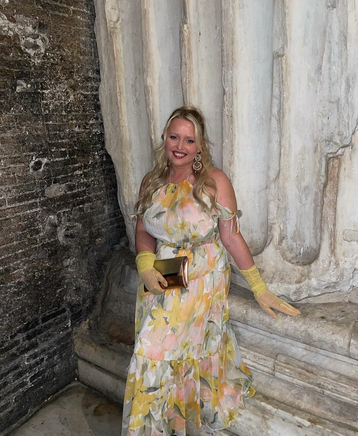 When I wore my Zara floral maxi dress in Rome, I styled it with vintage Jenny Vander daffodil gloves, a vintage mixed metallic DVF clutch from the Designer Exchange and Zara statement earrings. My fiancé Darren took these snaps at the Pantheon and then we went for an aperol spritz and some pasta… it was heaven!