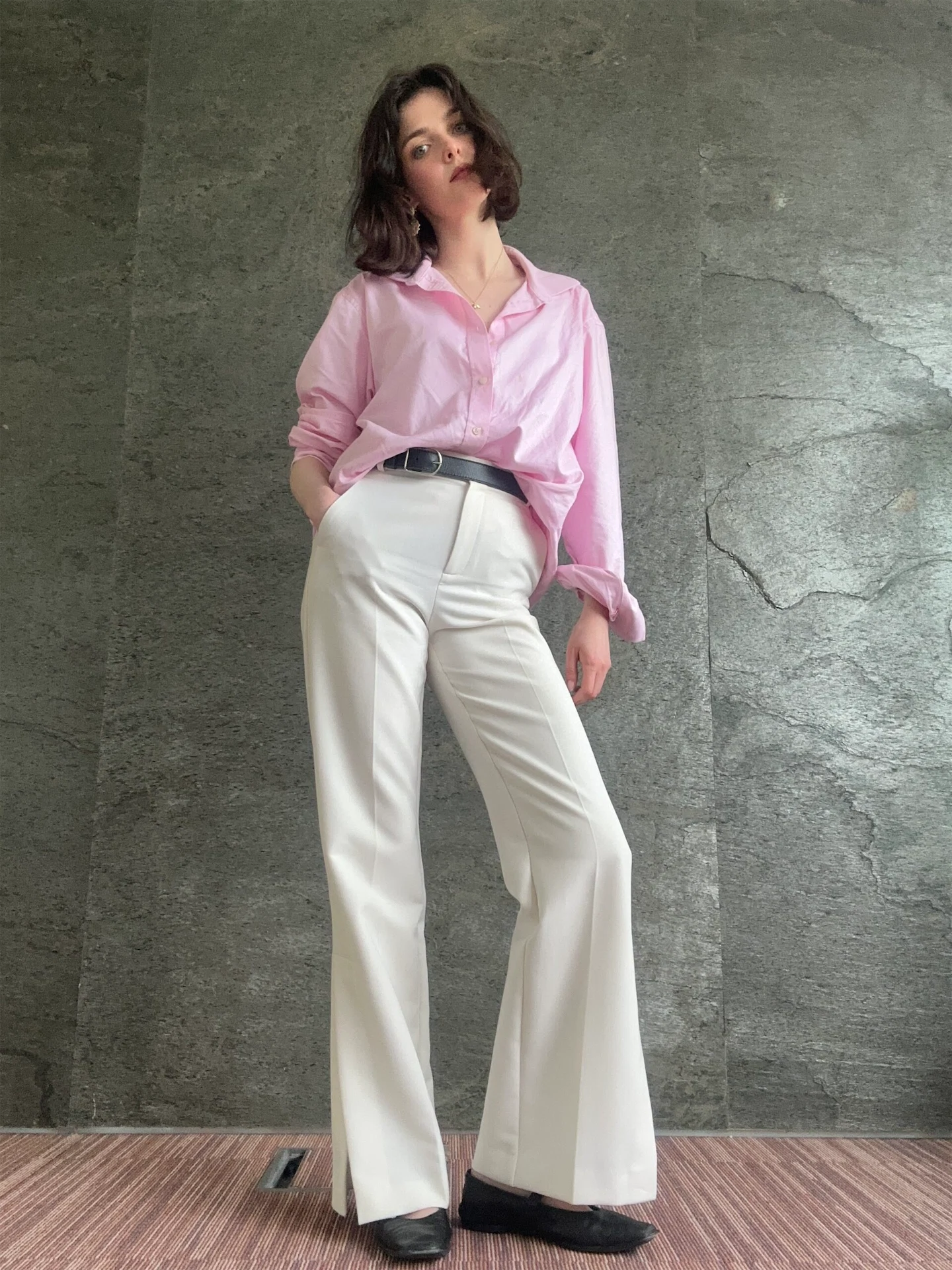 It’s Thursday, meaning we’re on the homestretch towards the weekend! Thursday is my favourite day to socialise because it makes the weekend feel infinitely longer. This evening, I have two PR events back-to-back so I needed to wear something that would bring me from day to night and suit different atmospheres. I also heard there is a ball pit at one of them (*interesting*) so heels, dresses and skirts were quickly vetoed. I went for these carrot-leg jeans from Bimba y Lola which have a dreamy seashell print, and a blue polo from Mango. I added these asymmetric earrings, one side has a giant pearl and the other has a chunky chain. I like that the asymmetry keeps the pearl/shell theme from becoming too literal. As the weather is improving, I decided to wear these furlane shoes from Vibi Venezia, inspired by Venetian gondoliers. When we go to Italy during the summer, I see so many women wearing these and I can understand why. Despite being velvet, they are light, airy, and surprisingly sturdy. If you visit Venice, you will see many different brands selling them, often stacking the different colours randomly to create a beautiful mosaic effect along the walls of shops. My favourites have always been Vibis though, as this burgundy pair were the first gift my boyfriend gave me shortly after we met a few years ago.