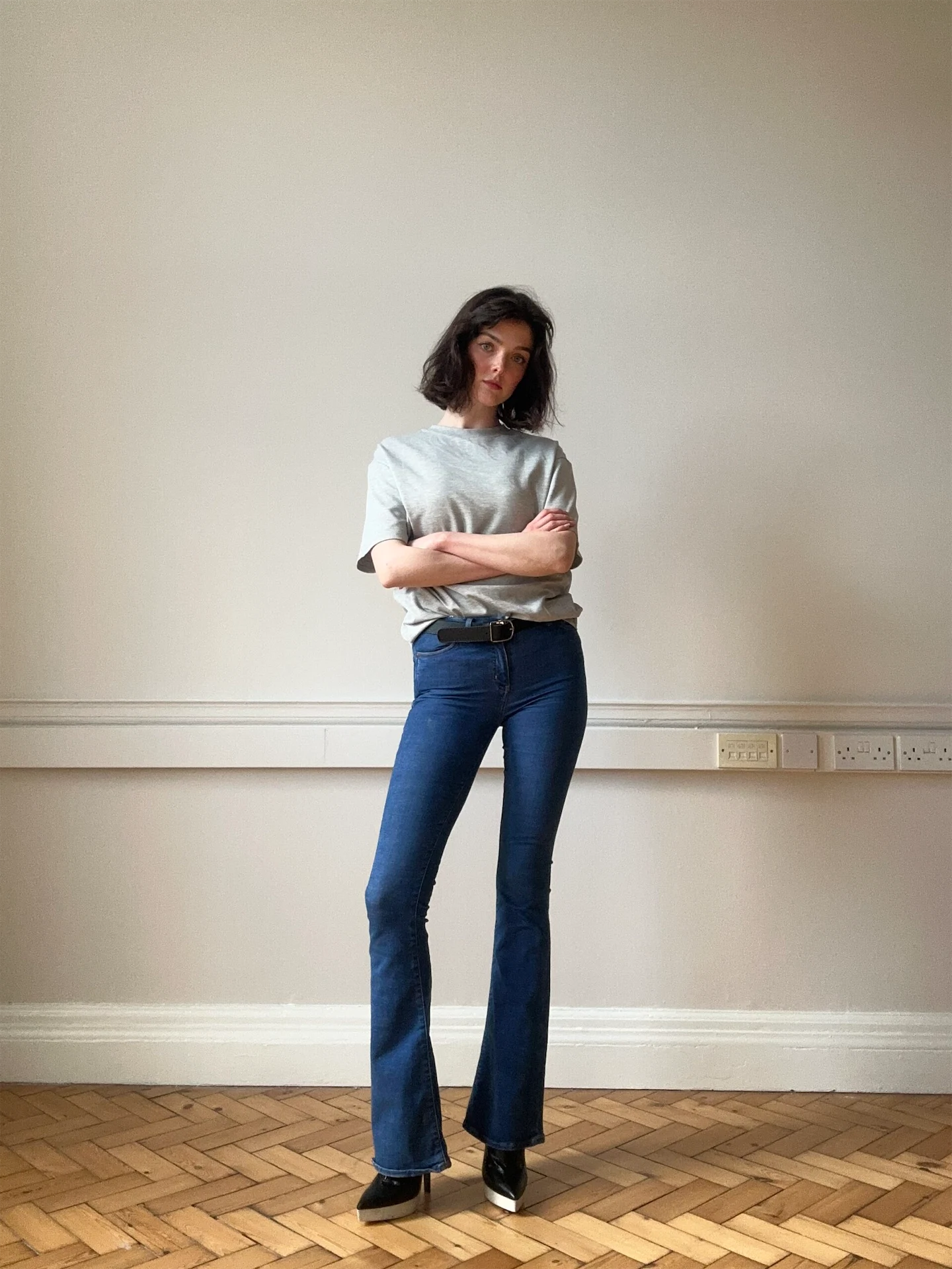 Today I am heading into my agency, Morgan the Agency, to catch up with my agents after my break. Morgan has been representing me for over ten years, and I would have been lost without them and their constant support. They have been there for every stage of my life, including this current stage I am in, having returned to university after modelling full-time for ten years. I try to pop in as often as I can, as there is always some plan in the works that we can discuss. I usually choose a basic outfit, as is standard when meeting agents or clients. I am wearing a pair of jeans from M.i.h Jeans and a plain grey T-shirt. The jeans are a little too long, so they need a heel. These boots are from Stella McCartney, I think they were part of the SS13 collection but I don’t quite remember. A former agent in New York bought them for my fashion week castings, though I walked like a baby elephant in them initially because they are quite high. Often when going to castings, we were expected to wear skinny jeans and tank tops, but I prefer other jean styles now that I am older. Flares seem very 70s, but I think they are a flattering alternative to straight-leg or baggy jeans. Investing in some good quality denim, or shopping second-hand is my favourite route to go down. I purchased these jeans eight years ago and they have never lost their shape or colour. I used to buy a lot of denim on the high street, but the last time I tried that, the jeans split right down the bum while I was out and about, thank goodness I was wearing huge pants at the time!