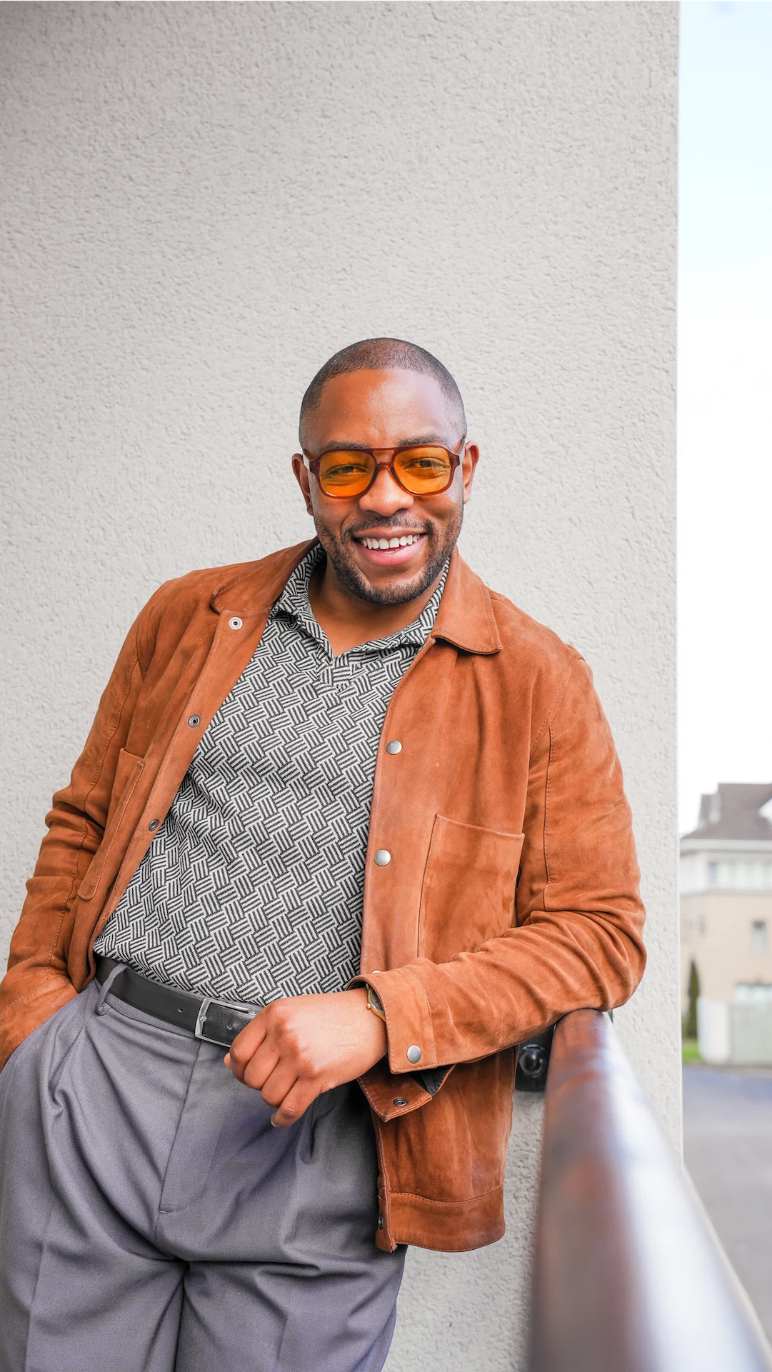 I like to kick things off every Monday with a smart look or something smart casual. Polos are a staple in my wardrobe whether it be autumn, winter, spring or summer. Using the print polo from French Connection as a base, I built my look around this. I went with wide-leg trousers from Zara, tassel slip-on loafers from Russell & Bromley, and for an extra pop of colour, I went with a suede jacket. The weather is still temperamental so you always want to have a nice jacket for when it’s cold. The grey and tobacco tones work harmoniously for this look. Keeping it simple with a watch, ring and sunnies was how I tied this look all together.