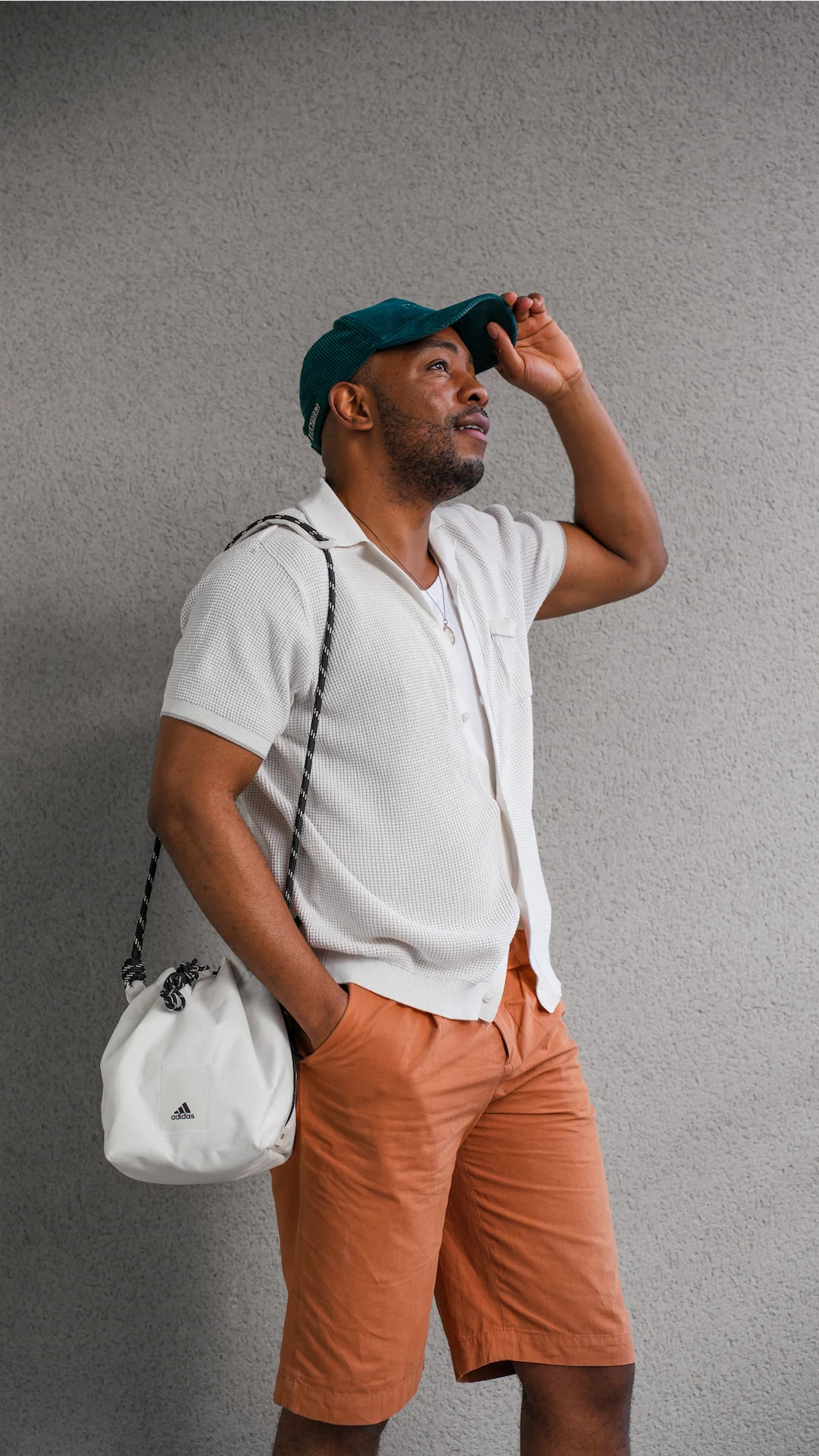 Saturdays tend to be super chill and I need an equally relaxed look. Shorts, a summer polo, sneakers and a tote are key, weather permitting of course. The shorts I’m wearing here are from H&M, my polo is from Primark, my cap is Zara and the bag is an Adidas tote. My sneakers are the same Casablanca x New Balance ones I wore earlier this week.