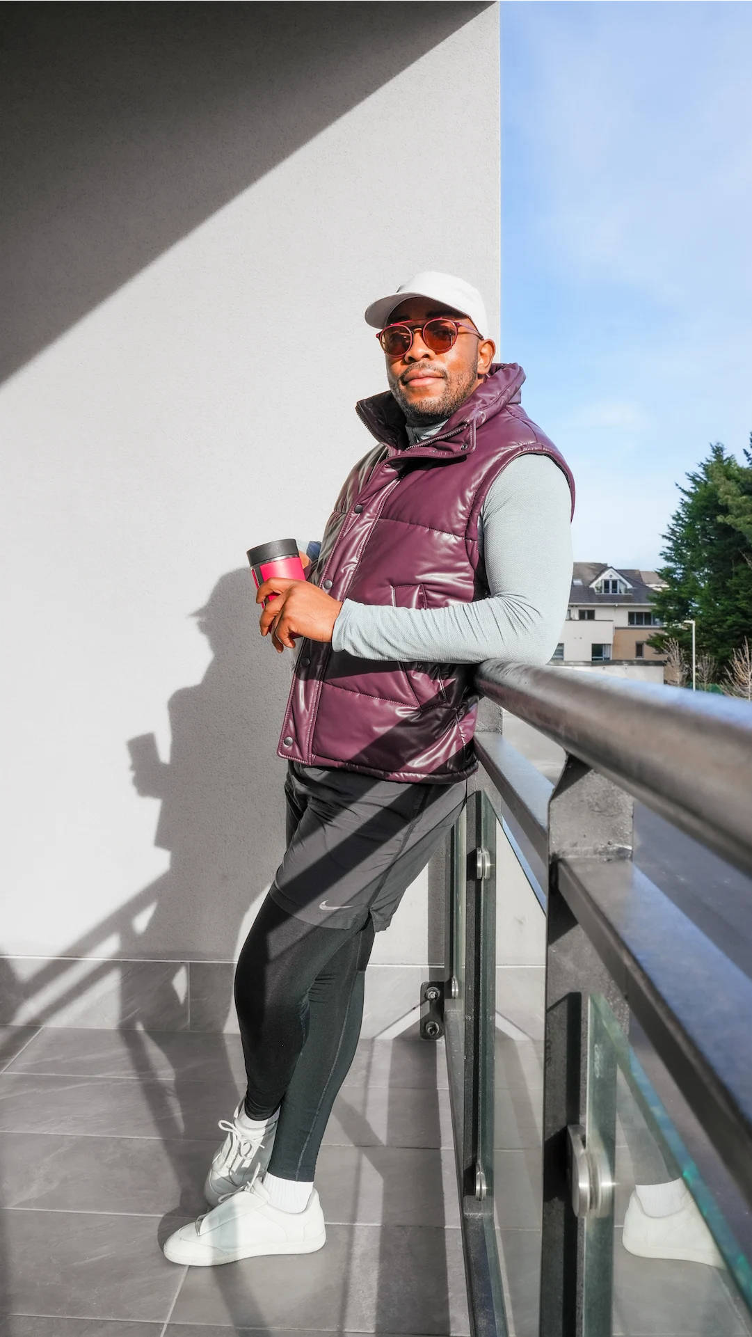 Sunday strolls are my favourite and just because you are in gym gear it doesn’t mean you can’t elevate it to look stylish. I usually start with a nice base of gym gear from Lululemon and Nike. My Maison Margiela sneakers are super comfy to wear and uber stylish. I finished the look with a gilet from H&M, sunnies from Tommy Hilfiger and a cap from H&M. A travel mug is a must when making a coffee pit stop.