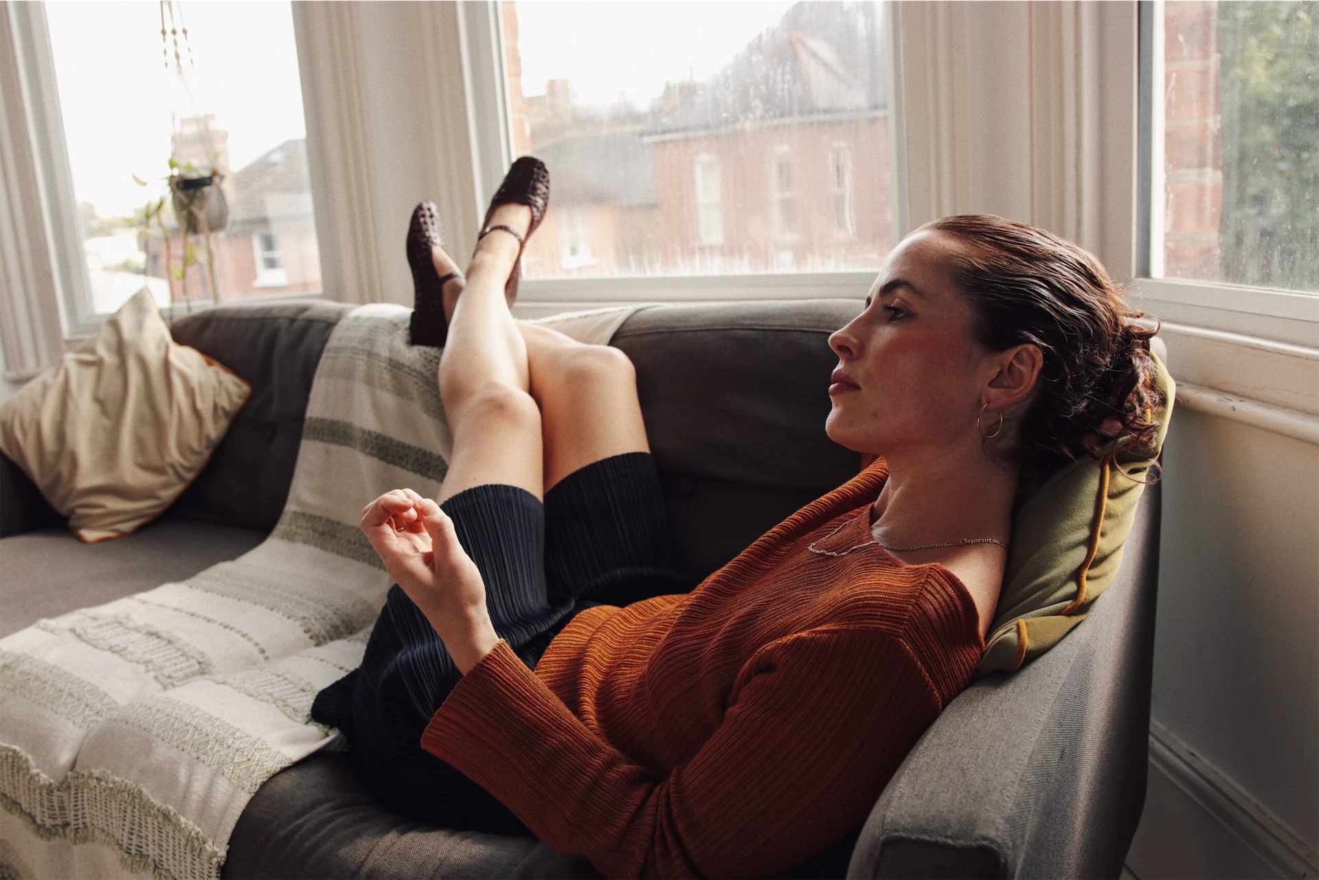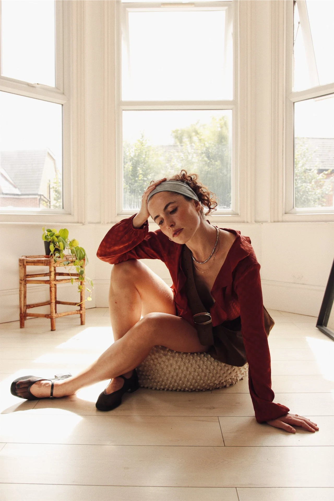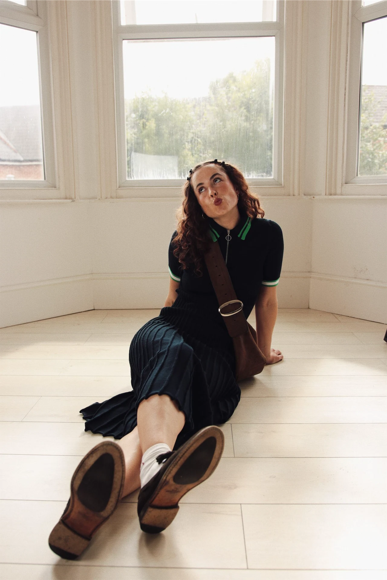 This outfit was found in my local charity shop in West Dulwich in London. It’s an affluent area and the store is full to the brim with brilliant quality brands like Jigsaw, Boden and this wool athleisure dress from M&S. I got it for £12.50! My brown loafers are a hand-me-down from my brother. They’re from the world-class, Viennese shoemakers Ludwig Reiter – impeccable quality and made to last. The look is finished with my Paloma Wool leather bag that I bought to treat myself for passing my driving test at the ripe old age of 31.