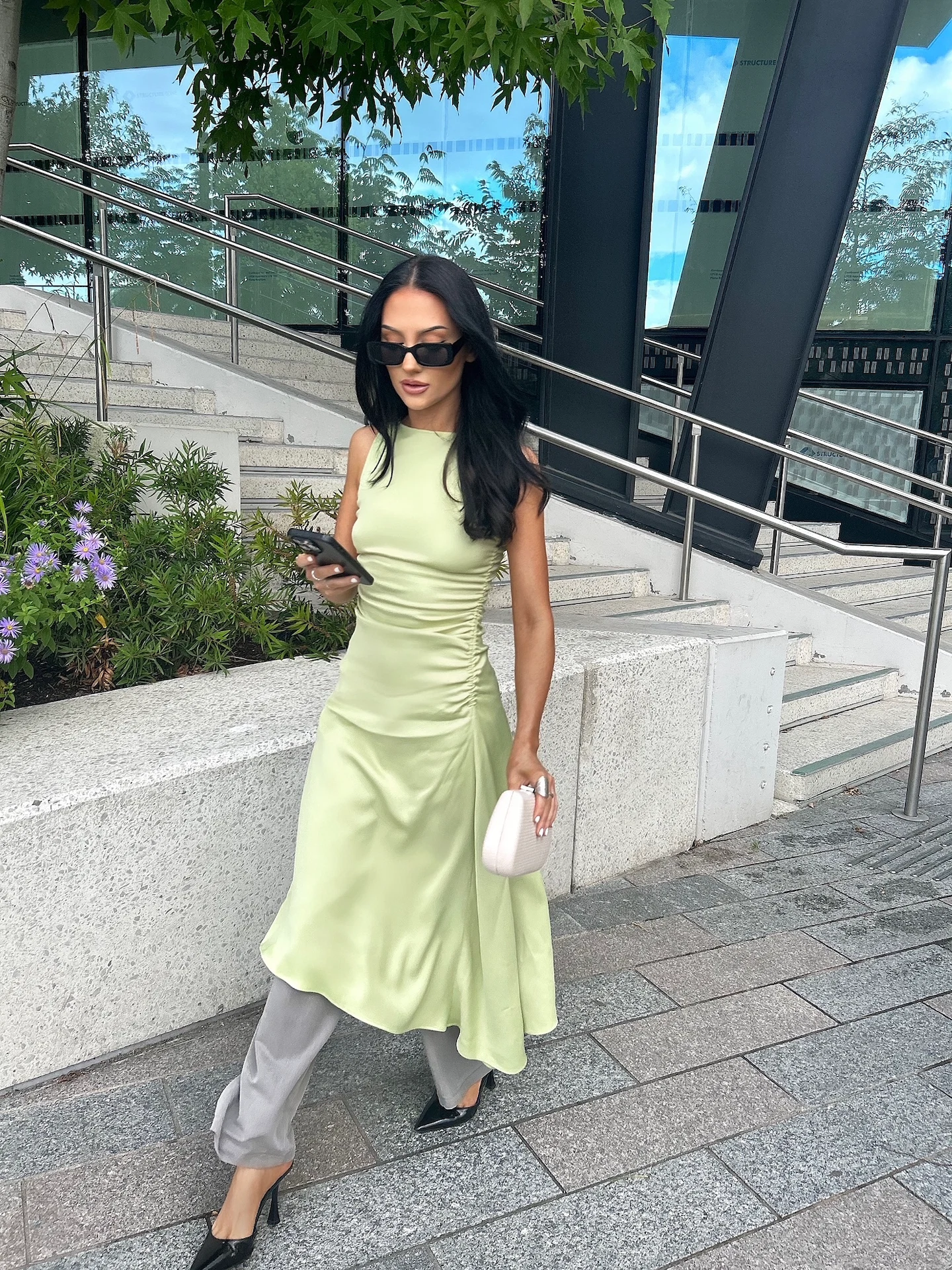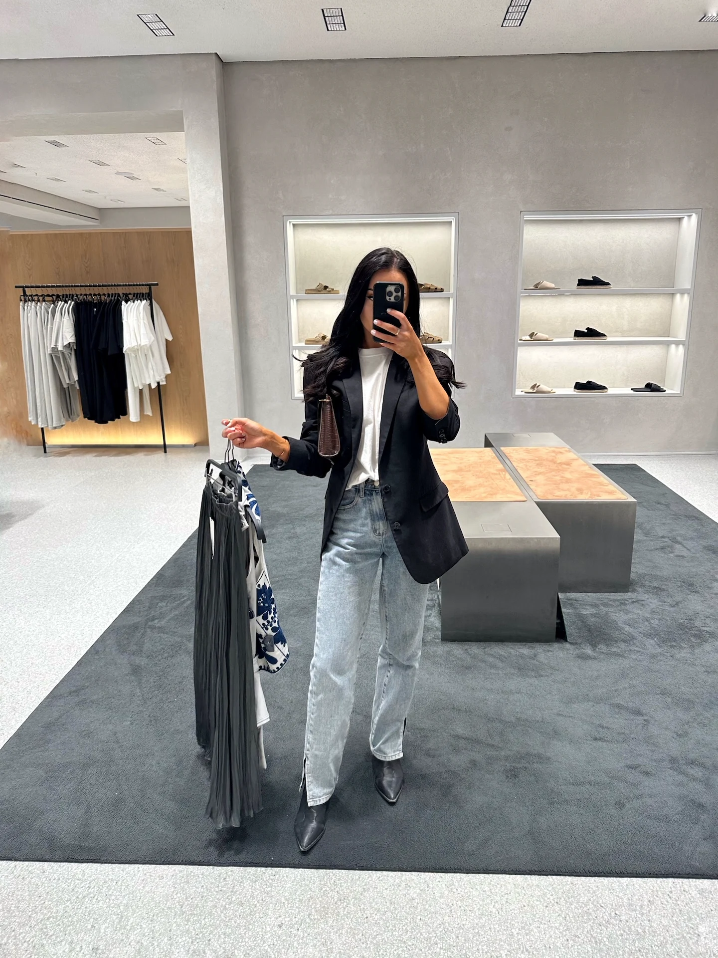 Monday was an office day for me, I popped into town for a meeting with one of the brands I work with. I paired this asymmetric dress from COS over a pair of straight-legged grey slacks and finished the look with black pointed-toe heels. I see a lot of people really hating on Y2K being back and the rise of the skirt-over-trousers trend, but personally, I love it! Layering one piece over the other adds so much dimension to an outfit – it looks so chic.