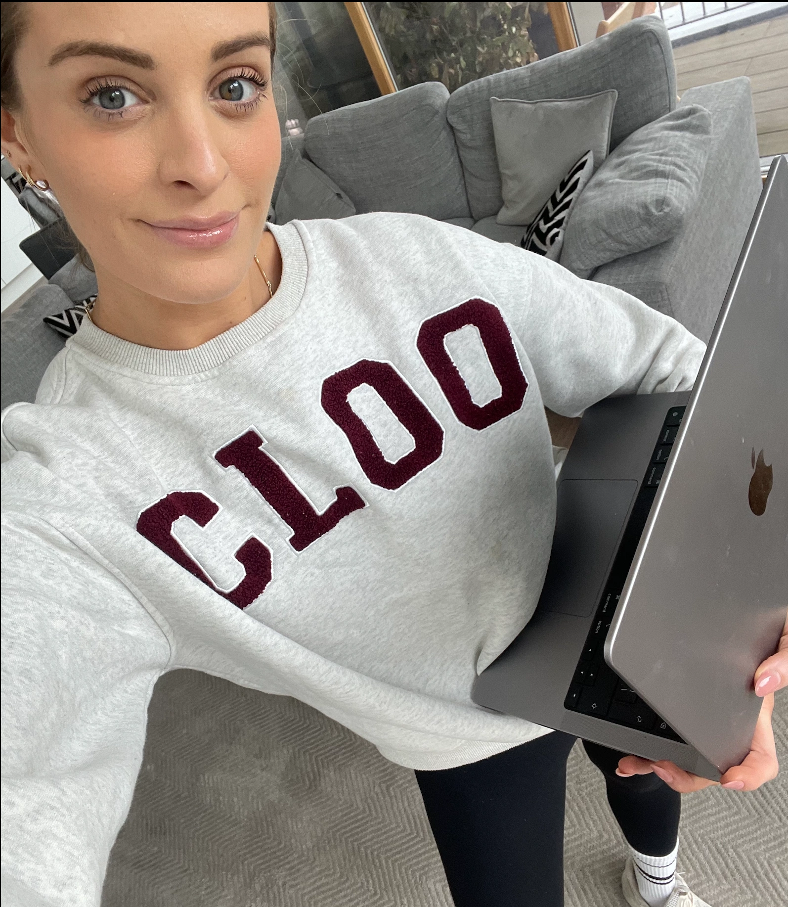 After the glamour, I’m straight back into my CLOO activewear – it’s what I start and end my day in, every day. It’s my daily uniform! It’s also what I find I get the most work done in, as I’m comfy. We just restocked our bestselling CLOO Varsity Jumper and it is my favourite thing to wear at home!